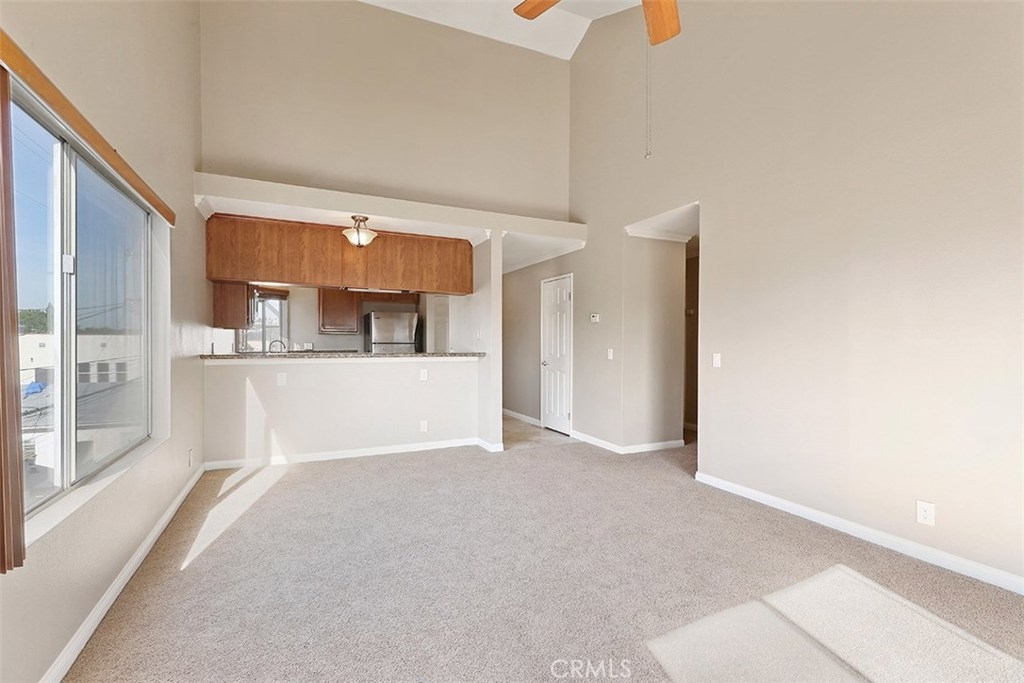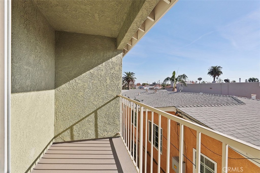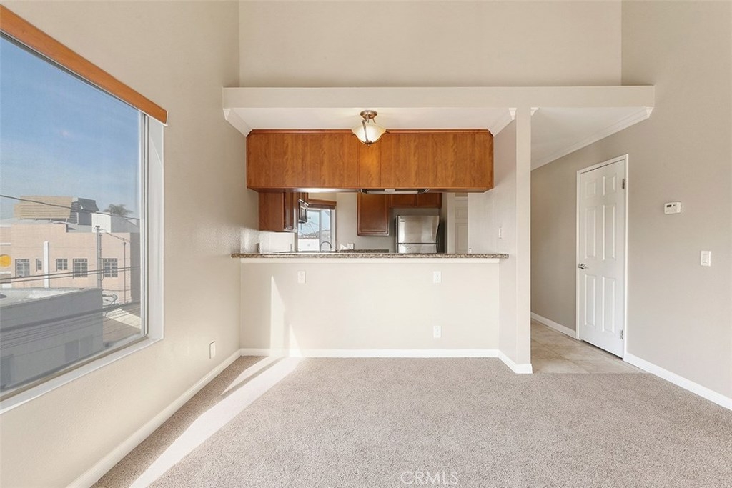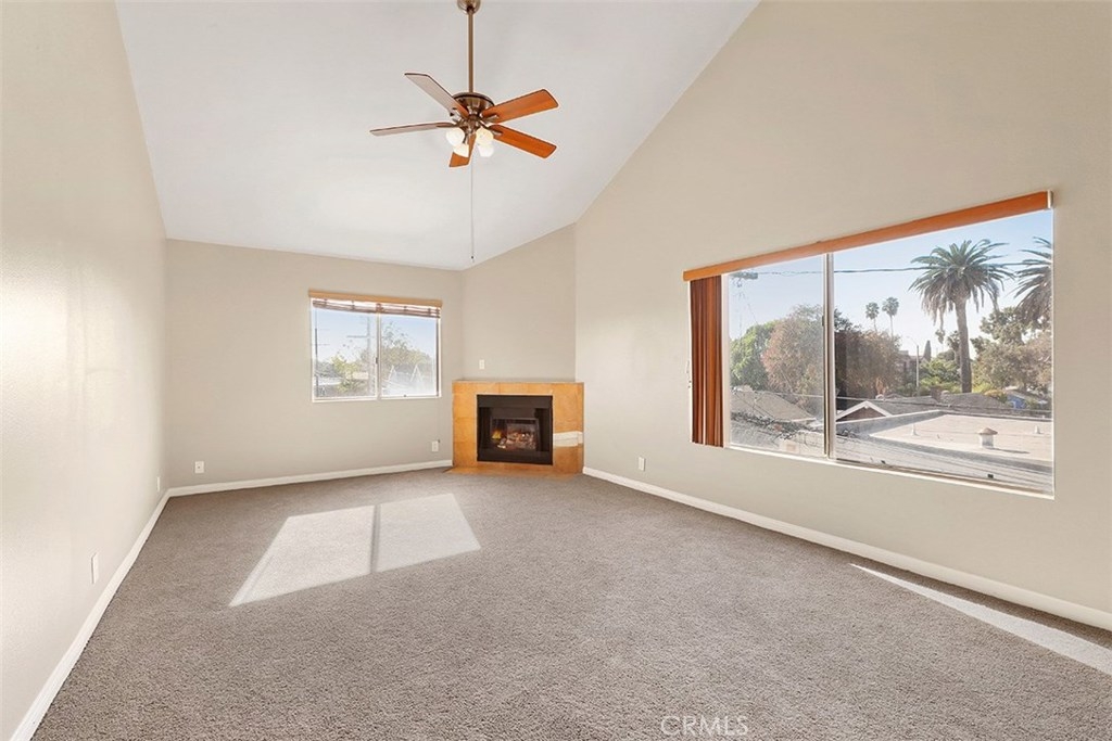 This beautiful two-bedroom, two-bathroom condo is an ideal place to live. 1063 Stanley, Unit 9 is an end unit on the top floor which allows for privacy and easy access from the outside. The open floor plan with vaulted ceilings enhances the airy feeling of the condo. The living room includes a modern fireplace and offers plenty of space for entertaining guests. Large windows usher in volumes of natural light and great cross breezes. The spacious kitchen with wood cabinets, a bar area that seats 3 and stunning black granite counters overlooks the dining area and living space. The bedrooms sit at each end of the hallway with generous closets, plush carpeting, and sizeable windows that brighten the area with ample natural light. One of the bedrooms features two mirrored closets and access to a private balcony. Both bathrooms are also roomy and stylishly designed. Laundry hook-ups in the condo are another added bonus. This desirable condo also comes with one dedicated parking space and storage in the parking garage. Additional parking spaces and storage are available for rent.