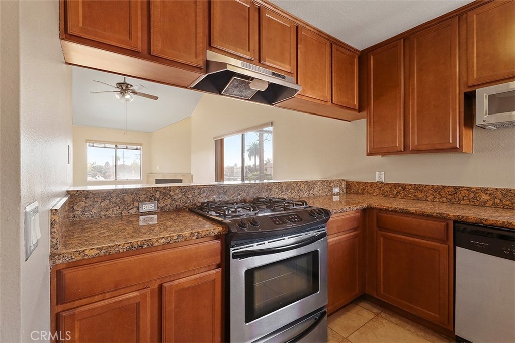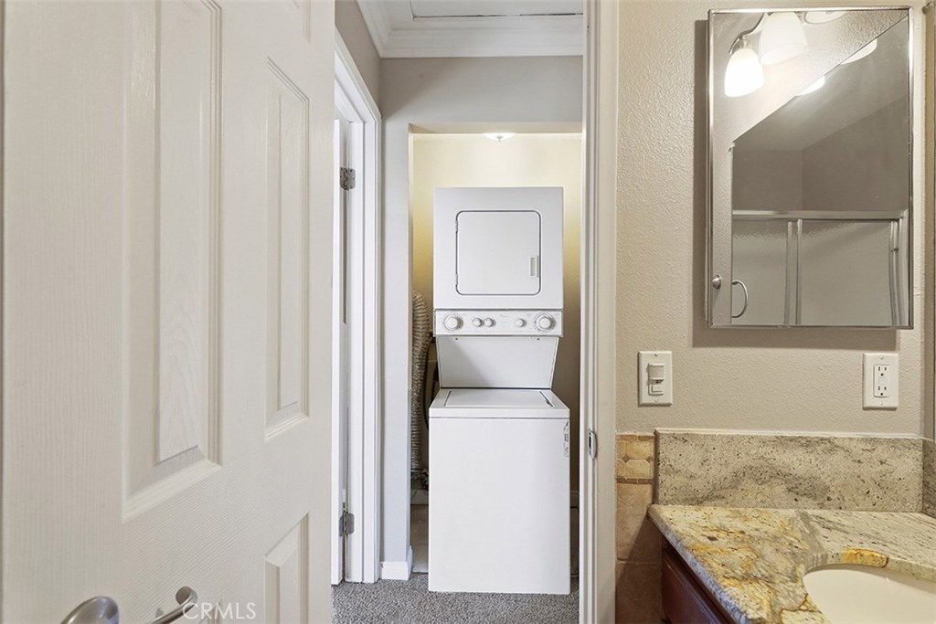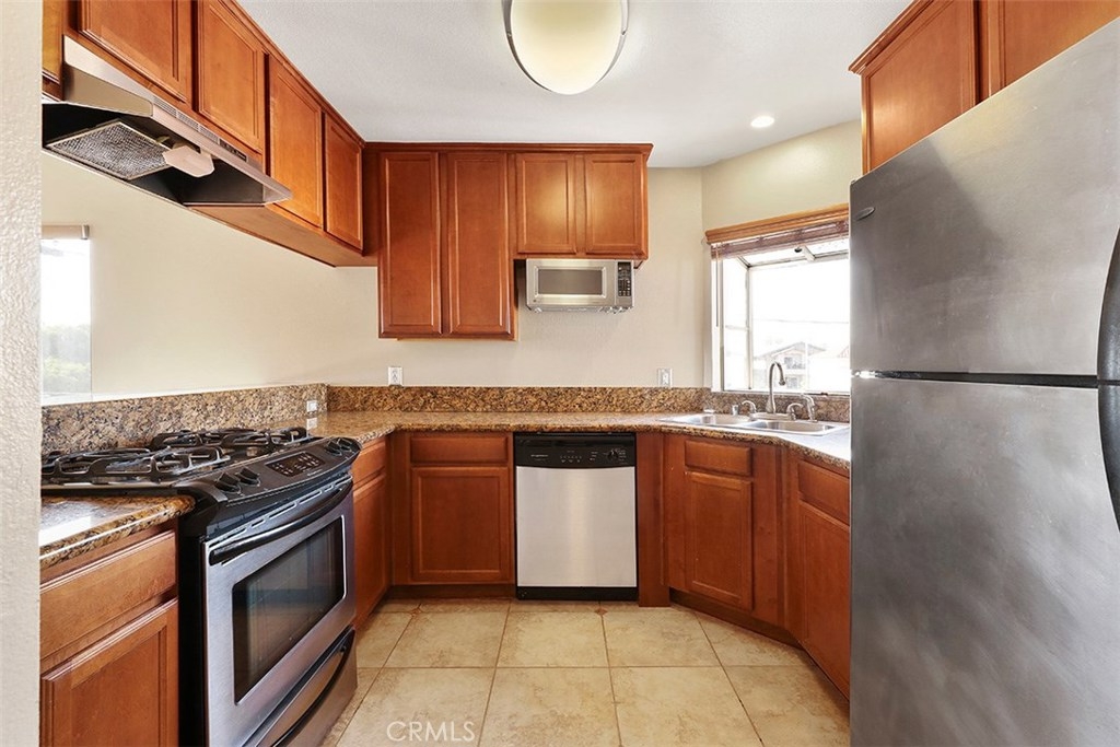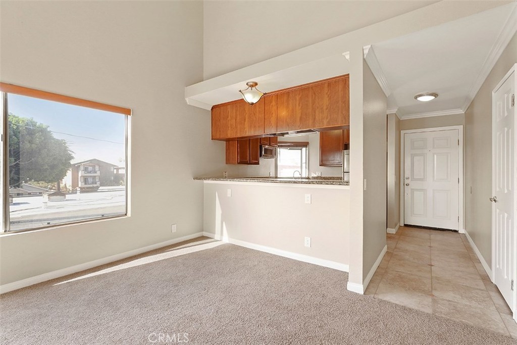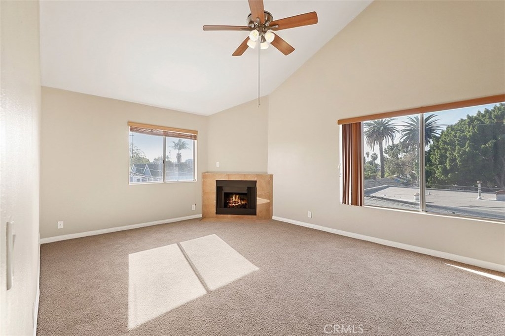 This beautiful two-bedroom, two-bathroom condo is an ideal place to live. 1063 Stanley, Unit 9 is an end unit on the top floor which allows for privacy and easy access from the outside. The open floor plan with vaulted ceilings enhances the airy feeling of the condo. The living room includes a modern fireplace and offers plenty of space for entertaining guests. Large windows usher in volumes of natural light and great cross breezes. The spacious kitchen with wood cabinets, a bar area that seats 3 and stunning black granite counters overlooks the dining area and living space. The bedrooms sit at each end of the hallway with generous closets, plush carpeting, and sizeable windows that brighten the area with ample natural light. One of the bedrooms features two mirrored closets and access to a private balcony. Both bathrooms are also roomy and stylishly designed. Laundry hook-ups in the condo are another added bonus. This desirable condo also comes with one dedicated parking space and storage in the parking garage. Additional parking spaces and storage are available for rent.