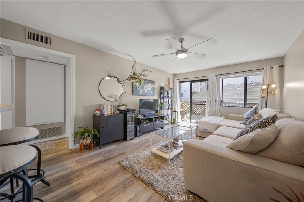 Welcome to Plaza Pacifica! This beautifully maintained 1-bedroom, 1.5-bathroom condo offers 731 square feet of comfortable living space, featuring a spacious open layout perfect for modern living. Enjoy a large, light-filled bedroom with extra closet space and plush carpeting for added comfort. The remodeled bathrooms add a sleek, modern touch, while the laminate flooring throughout the main areas add durability and style. The kitchen is both functional and inviting with ample cabinet storage and a breakfast bar. The living room and bedrooms both have ceiling fans that keep the space cool and breezy. Step out onto your private, spatious balcony — the perfect spot to relax or entertain. The unit also includes a dedicated parking space in a secure garage for your convenience and peace of mind. Located just minutes from Downtown, the beach, Shoreline Village, The Pike, Pine Avenue, and an array of restaurants, shops, and nightlife, this condo offers the best of city living. Plus, the HOA covers water and trash, making this home as practical as it is appealing. Don’t miss this opportunity to own a centrally located gem in a great Long Beach neighborhood!