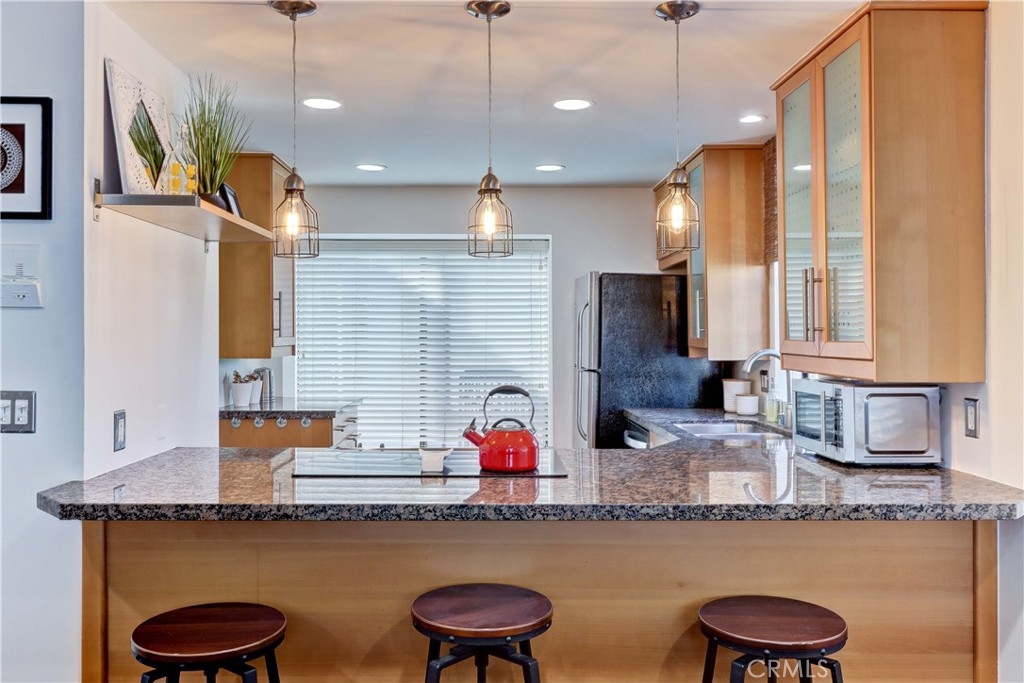 Come experience Long Beach living at its finest! Gorgeous end unit condo in desirable East Side Zaferia District. Beautifully upgraded kitchen features: light wood cabinets, recessed lighting, granite counters, garden window, and breakfast bar. Stainless kitchen appliances: electric range, new dishwasher, microwave and refrigerator are all included. Spacious living room enjoys a cozy gas fireplace and slider to balcony for outdoor dining. Large primary bedroom includes a private balcony, while both upstairs bedrooms have vaulted ceilings w/ ceiling fans and new mirrored closet doors. Freshly painted interior with central heat, dual pane bedroom windows and laminate wood flooring. Association amenities include a community laundry area at no additional cost, community storage area and 24 hr. video surveillance. Gated parking garage w/ two included spaces. HOA: $292/month. Close proximity to shopping, dining, beaches, parks, and freeway access. Welcome home!