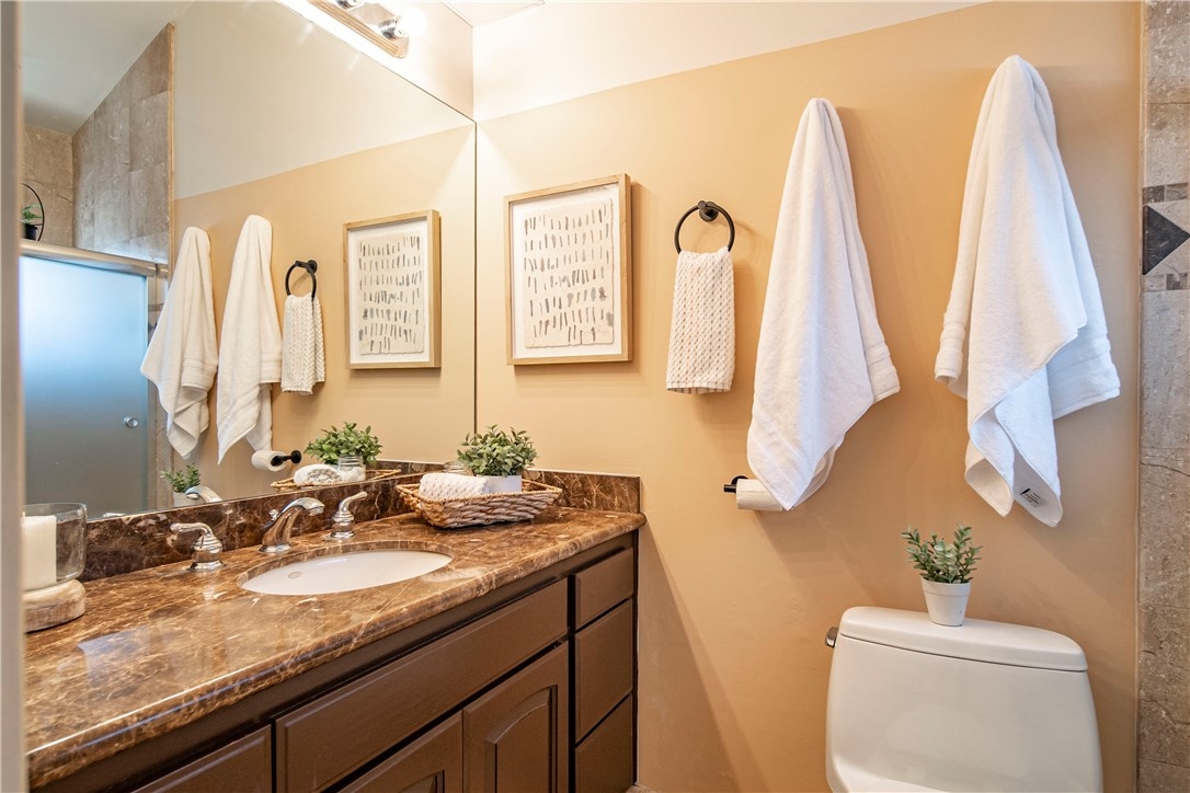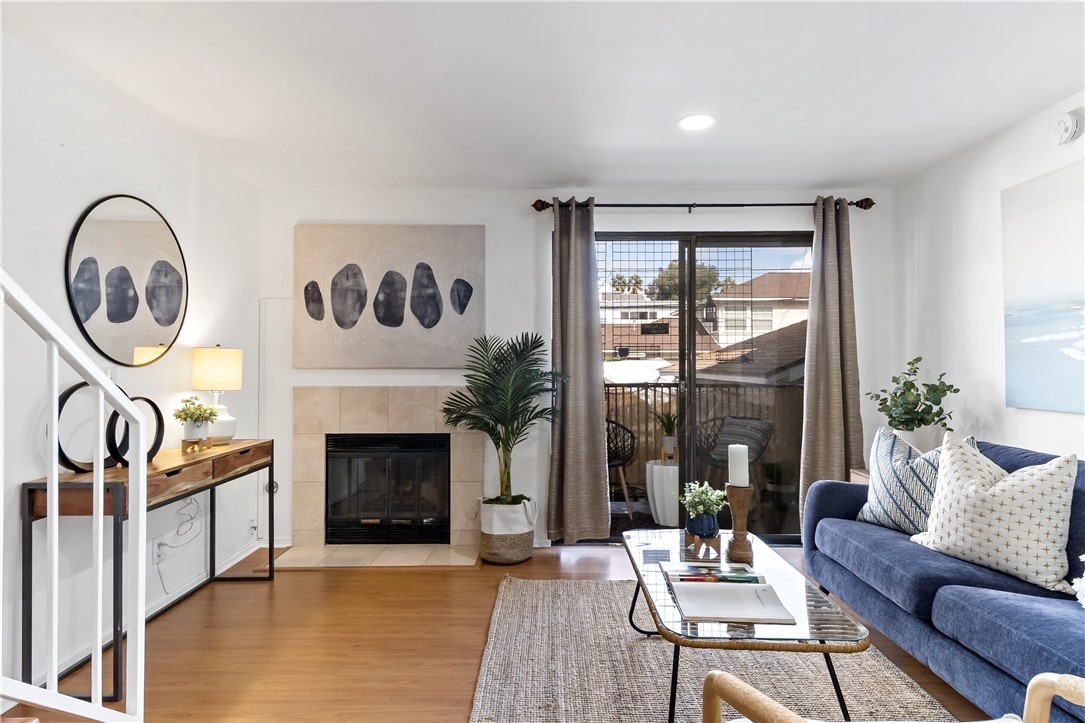 This terrific condo checks all of the boxes...in-unit laundry, assigned parking, more than one bathroom, pet friendly, outdoor space...check, check, and check again! Gorgeous travertine floors greet you in the entry and are carried through the kitchen and lower level bathroom. The kitchen is light and bright with granite countertops, lots of storage and even a pantry. The gas fireplace fills the space with warmth and invites you to spend the evening curled up on the couch watching your favorite, binge-worthy show. This condo has outdoor space on both levels, a balcony off the living room and one off the master bedroom upstairs. The full bathroom upstairs has beautiful tile and granite countertops. You'll have assigned parking in the subterranean garage and the icing on the cake is the upstairs, in-unit laundry. Truly an exceptional condo to live in and enjoy. Close to Alamitos Beach, the Bluff Park area, Retro Row and all that Long Beach has to offer.