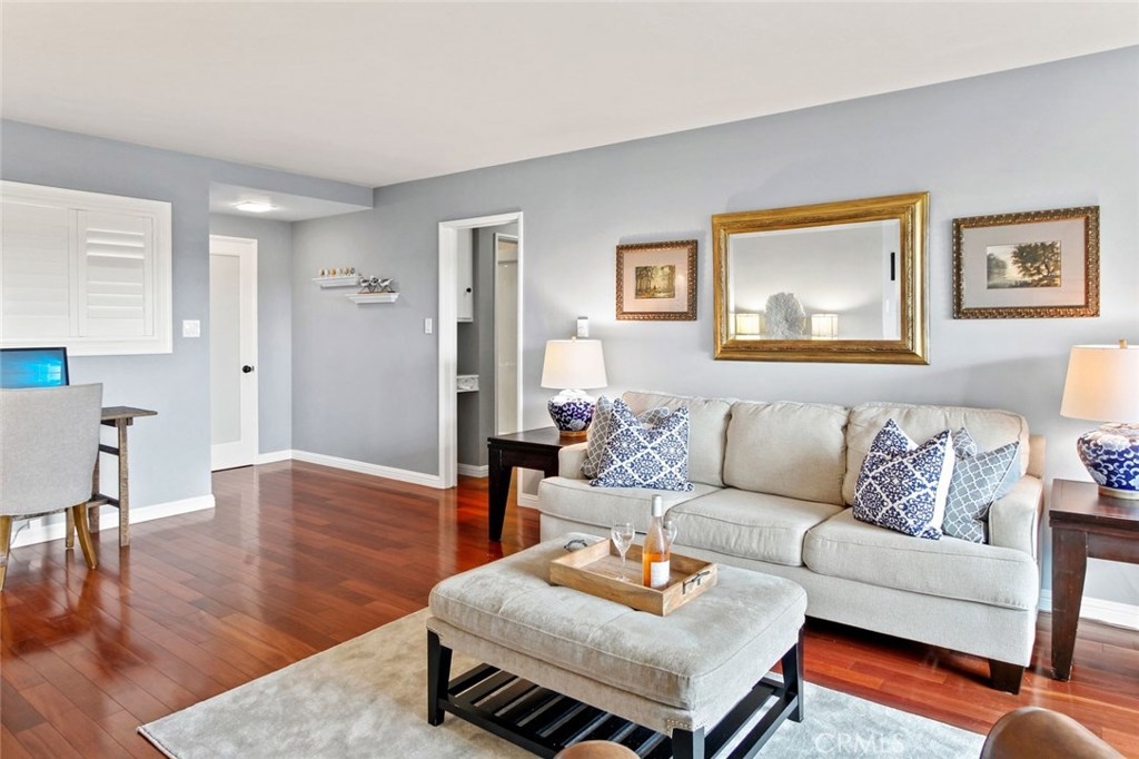 This enchanting one bedroom condo offers a stylish living experience in a quiet complex, and is only minutes from Ocean Blvd with tons of amazing shopping locales, restaurants, the Belmont Pier and the sunny beach. The open floor space enhances the spacious feel, and the sliding glass door in the dining room allows a constant flow of natural light to bright the space. Rich hardwood floors and plantation shutters add a touch of elegance, as well as the classy paint scheme and decor. With direct access to the patio area from the dining room, this alluring condo is ideal for entertaining guests. The patio space is a perfect spot for enjoying the beautiful weather with a cup of coffee. The kitchen is a pristine dream ample white cabinets and newer counters, as well as a glass-top stove and top of the line stainless steel appliances. This captivating condo also has plenty of hallway storage space. The bedroom is roomy and airy, with generous closets and handsome hardwood floors. The bathroom is large and features both a bathtub and glass shower. The complex has been recently updated and renovated, it is also pet friendly. The unit also comes with 1 subterranean oversized parking space and double pane windows.