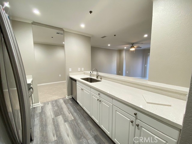 Welcome home to 838 Pine Ave! Grab this Like New, TOP Floor interior end unit before its gone. Featuring 3 bedrooms and 2 baths is one of the largest and most desirable in the community. Master End suite separates the unit walk in closet and direct access to the wrap around patio. The location of this top floor patio shares a wonderful blend of sunshine and shade throughout the day. Ready for immediate Move-in with All New paint, flooring, appliances including new Washer and Dryer, stainless steel Stove, Microwave, Dishwasher, Refrigerator and fixtures. The kitchen also features a bar seating countertop with seating for 4 or easy serving and placement of dishes with the dinning area's direct access off the kitchen. The unit is light and bright featuring recessed lighting throughout, Crown molding in Livingroom/dining, kit and fans in each bedroom. Including to the open layout, The 2nd bedroom also has a large walk-in closet almost like a junior suite with access to the 2nd bath directly across the hall. The building features secured access and controlled gate to underground tandem parking with close access to the elevators. The roof top has a large common area patio for taking in the views and entertaining your guests as well as the interior courtyard. Buyer to confirm but it appears the community is also allowable for individual solar upgrades on the rooftop and Tesla or other electric vehicle charging stations to be installed. Enjoy living in downtown LB on Pine, a vibrant diverse growing community with so many activities, & restaurants just steps from your door.