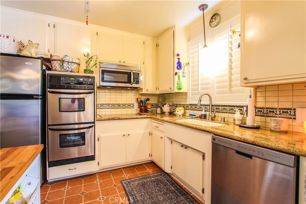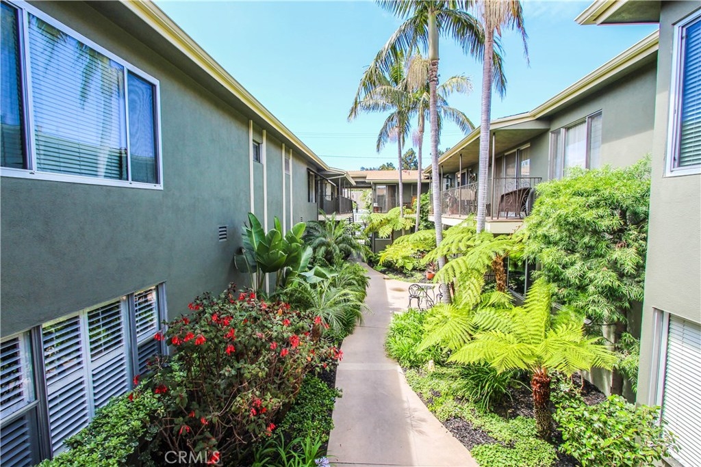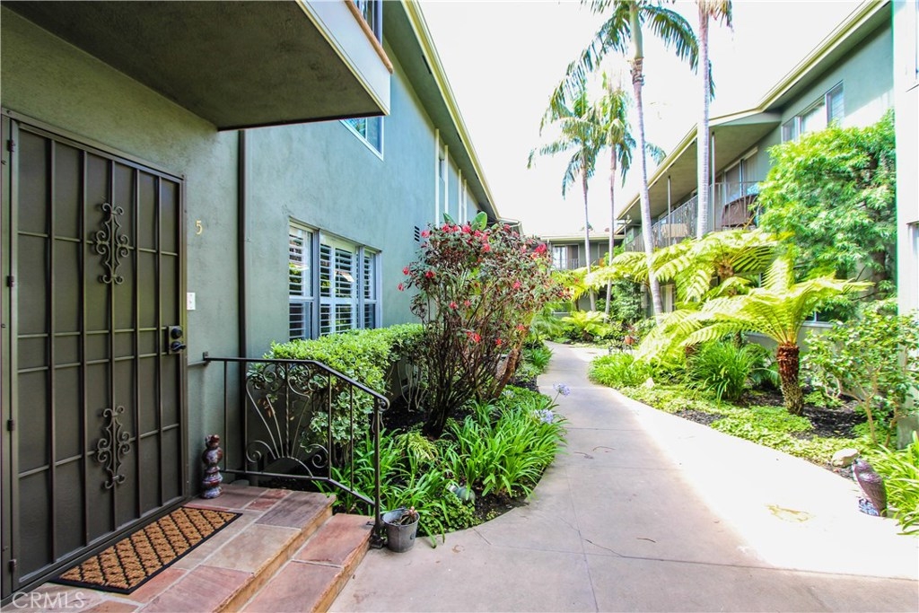 The lush, green courtyard punctuated with fuchsia flowers, the squawks of green parrots overhead & the babbling sound of water from the cherub embellished fountain will transport you to the rain forest. Continue down the winding path to the unit tucked neatly in the back. Dark chocolate stained original hard wood flooring throughout w/ whipped mocha colored neutral walls anchored w/ white routed crown molding & baseboards expand the space beyond its modest dimensions. Plantation shutters control the light & breezes & an arched cutout window & entry into the kitchen promotes circulation & old world charm. Yellow ocher infused with amber colored granite punctuates the kitchen counters anchored by ample creamy white cabinets w/ brushed nickel hardware. Perfectly imperfect Saltillo tile w/accents on the floor, handmade subway-style tile w/ a ribbon of hand painted accent tile on the back-splash. Stainless appliances add a modern cool touch w/ functionality. A goose neck sprayer faucet w/ single push control highlights deep under mount sinks. Spacious bedroom w/ walk in closet w/organizers keeps things in order & easy to find. The ubiquitous charming blush colored tile in the bathroom reflects a warm healthy glow no matter how you’re feeling. While there is no garage with this unit, there is ample parking on the one-way street & in the rent-able lot a leisurely 2 min stroll around the corner. In unit Combo Washer/Dryer so, no more laundromats for you!
