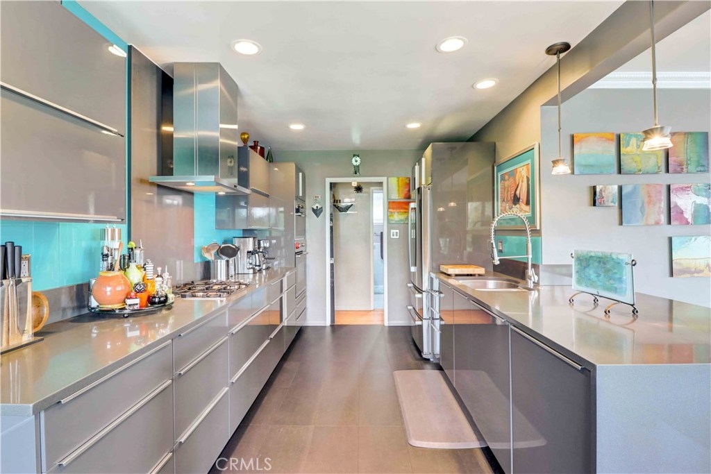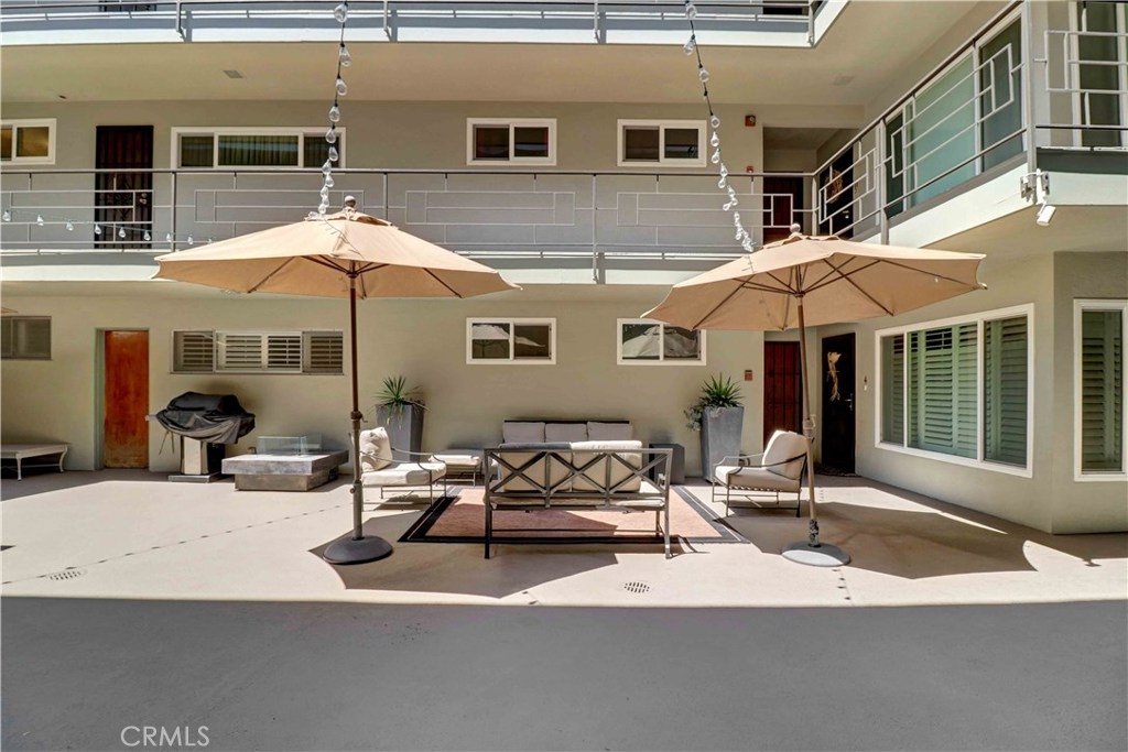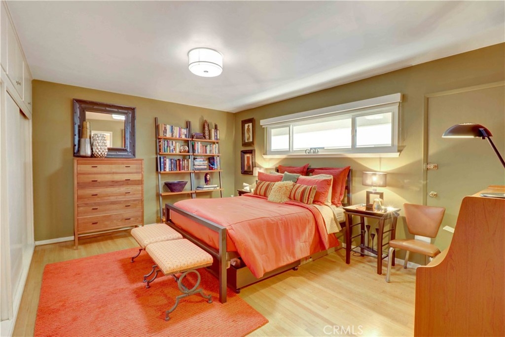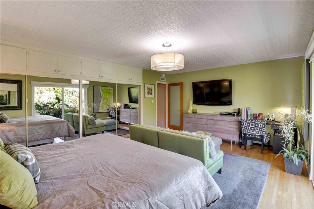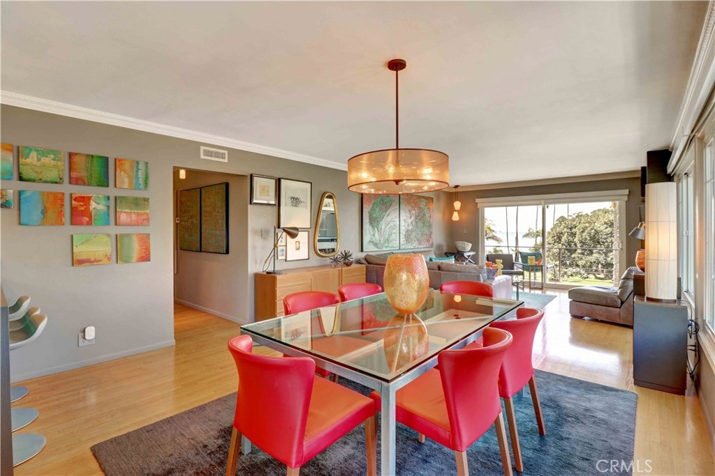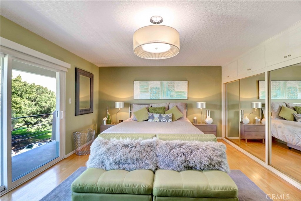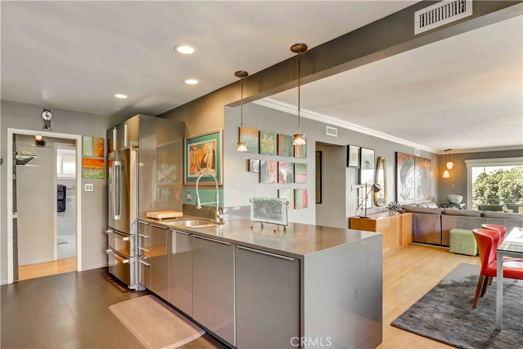 Truly once in a lifetime opportunity! Impeccably remodeled top floor corner 2 bed/2 bath condo with spectacular 180-degree views of the Pacific Ocean and Bixby Park. This mid-century modern 1459 sq ft condo features expansive views of the Iconic Queen Mary from the living room, dining room, kitchen and master bedroom. The open concept living space features custom fireplace with linear electric insert. There are three sliding doors that spill onto the two extra large balconies facing both south and west for incredible sunrises and sunsets. The remodeled kitchen features tons of European gray cabinetry, gray quartz counters, custom glass backsplash, LED lighting, high-end appliances including Bertazzoni gas cooktop, built-in oven and microwave, Perlick beverage cooler and Bosch refrigerator. Both mid-century period bathrooms are tastefully upgraded with modern lighting/fixtures and tile accents. Wake up every morning with blue ocean and green treetop views from your extra large master bedroom with tons of closet space. The second bedroom is also spacious with large closets and attached bathroom. Additional features include new designer lighting thru-out, laminated glass doors, orig hardwood floors, newer central HVAC system and walk-in laundry room with tons of storage. Located in desirable Bluff Park, the Beach Park HOA is a well-maintained, pet friendly building with low HOA fee. It has incredible access to the beach, bike path, farmers market, yoga, LB Art Museum and more!