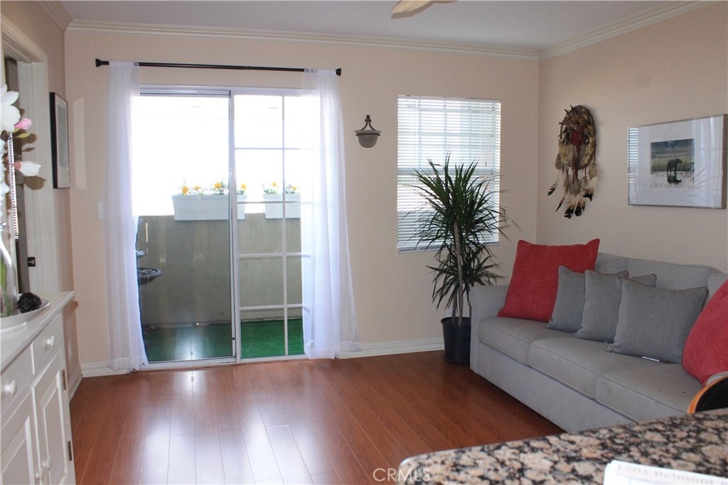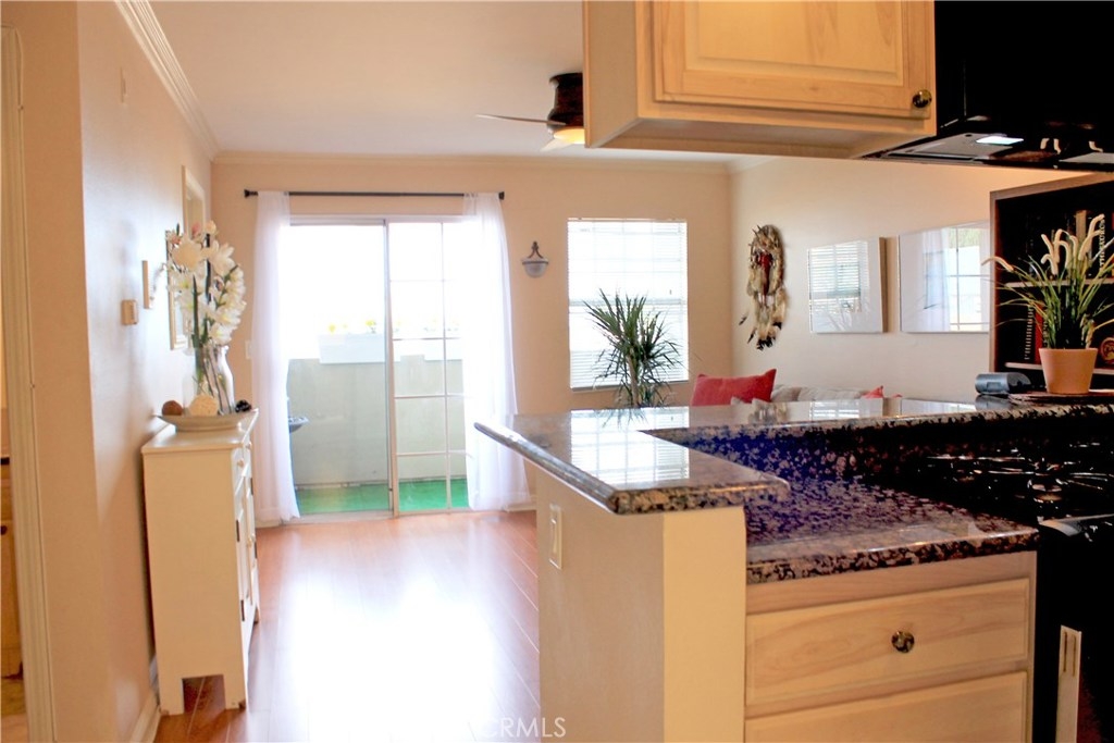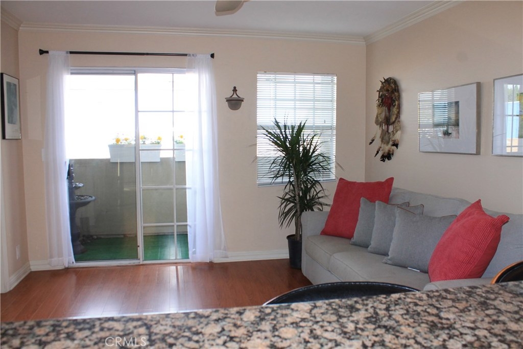 Bright, light and airy unit located in a gated, secure small community of 8 units feels larger that its stated square footage. This cute 2 bed/2 bath condo is well-appointed with NEW Microwave and Dishwasher. Granite Countertops, Stainless steel range, marble floors. Even the Refrigerator is included. Pergo laminate floors in the living room, and marble floors in the 2 bathrooms. The north-facing balcony is peaceful and breezy. There is a ceiling fan in the living room and both bedrooms, keeping the air fresh and cool. This unit includes an assigned parking space. Close to Recreation Park, shops, restaurants, library. Come see for yourself!