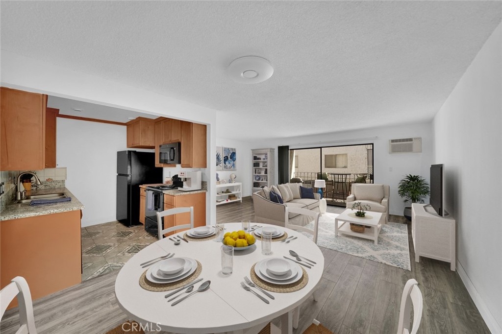 BACK ON THE MARKET NO FAULT OF THE SELLER OR PROPERTY CONDITION!! Explore this charming 1-bedroom, 1-bath condo at 3530 Elm Ave #106 in the desirable Chateau Thierry neighborhood of Bixby, Long Beach. It offers a warm and inviting atmosphere. The kitchen is both functional and stylish, featuring a Hisense 18-cu ft Top-Freezer Refrigerator, an Amana Front Control 24-in Built-In Dishwasher, a Hotpoint 30-in 4 Elements 5-cu ft Freestanding Electric Range, and a Badger 1/3-HP Garbage Disposal. The attractive backsplash, seamless counter space, and ample cabinet storage complete the picture. Notably, the home has been updated since its purchase in 2019, ensuring it offers a contemporary living experience. The living room opens to a roomy balcony, perfect for relaxation and enjoying the natural light. The condo also features a spacious bathroom, a generously sized bedroom with mirrored closet doors, central heating, and an air conditioning wall unit for added comfort. Parking is convenient with a designated spot in the underground garage where it is possible to install an EV Charger, and there is plenty of street parking. The community is secure with a gated entrance, and the Bixby Elm HOA ensures well-maintained grounds, providing peace of mind. Situated near First Fridays in Bixby Knolls, top-notch local restaurants, shopping, and freeways, this is a true hidden gem. Don't miss your opportunity to embrace a desirable lifestyle in a highly sought-after locale. – schedule a showing today! NOTE: The home was virtually staged...