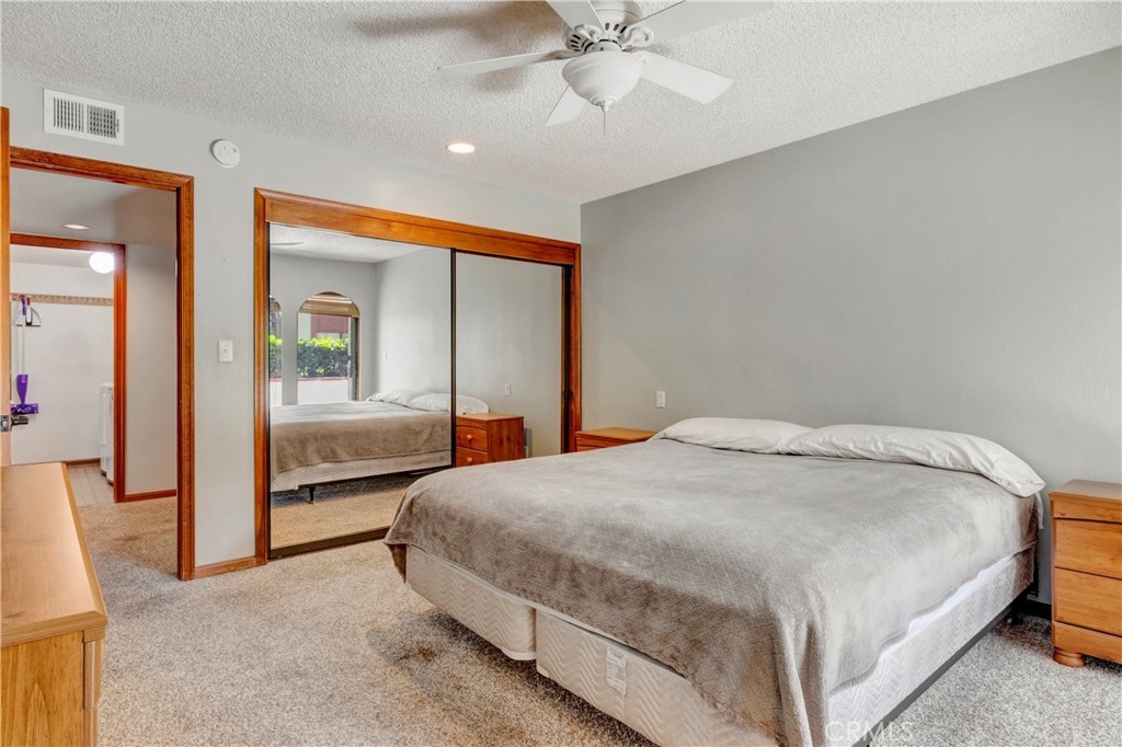 Premiere single level 1st floor location situated in one of the best locations on the quiet backside of the exclusive 24 guard gated Bixby Rivera complex set amongst lush greenery and trees. Largest sq. ft. model in the complex with 2 bedrooms and den, 2 baths and OVER 1,900 sq. ft. + 2 large patios. End corner location with only one side common wall with a neighbor. Great for buyers with small dogs or bringing groceries in as this unit has easy access out to the community walkways and the parking spaces down below. Enjoy space in this popular E model with a huge fireside living room that flows into a separate dining area. Sliding doors lead out to a large patio ideal for indoor/outdoor living. The sun filled kitchen includes updated stainless steel appliances, tile floor and recessed lighting. Flexible floorplan that includes a den (or possible 3rd bedroom) with charming wainscoting and access to the 2nd patio. Guest bedroom with mirrored closet, access out to the long patio and bonus office/work space unique to this unit. Huge primary bedroom suite that includes a walk in closet, fireplace, and an attached master bath complete with double sinks and separate soaking tub and shower. The unit also features: inside laundry room that includes a washer and dryer, plantation shutters, newer forced heating and air conditioning, newer water heater and 2 side by side subterranean parking spaces with bonus storage above. Elevator access direct from the parking up to the 1st floor single level unit or take a few steps up right to the unit location. Bixby Riviera is one of the nicest complexes in Long Beach located conveniently near Cal State Long Beach and freeway entrances and all just minutes to beaches, parks, restaurants, and shopping. Meticulously maintained complex featuring many community amenities: 24 hour guard gate, water fountain entry, swimming pool, spa, tennis/pickleball court, gym, saunas, clubhouse, meandering pathways with lush landscaping and mature trees. A great opportunity to own the largest model in one of the best locations in the entire complex!