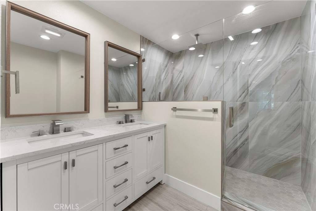 BEAUTIFULLY REMODELED VA APPROVED CONDO! The gorgeous, grand lobby leads you into the building to a FIRST FLOOR, DOUBLE DOOR ENTRY, END UNIT with only 1 SHARED WALL to this beautifully remodeled condo. The home has new kitchen, Marble bathrooms, new floors, windows, recessed lighting, paint, appliances, plantation shutters, walk-in closet and much more! Beautiful gated VA APPROVED community with 24 hour guard, tennis court, pool, jacuzzi, his and her saunas, gym, recreation room, 2 roomy parking spaces with storage plus additional guest parking. The entire community is lush with landscaping for a leisurely stroll with your 2 permitted pets. Bixby Riviera is conveniently located next to shopping, freeways, restaurants, Cal State Long Beach and much more. SOME PHOTOS VIRTUALLY STAGED. Buyers to do their due diligence on all info.