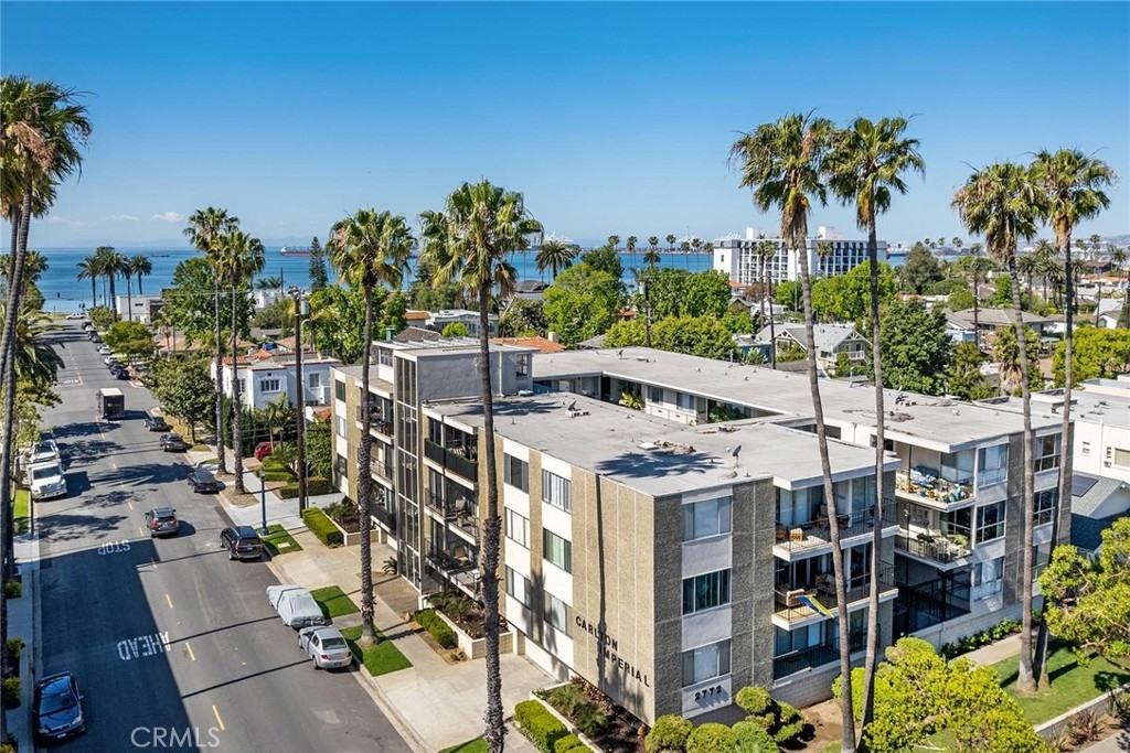 Located in the Carlton Imperial Association this top floor corner unit is a beautifully updated 2-bedroom 2 bath home with City and Mountain Views. You will love the bright and open feel and layout of this spacious condo with Bamboo flooring throughout, remodeled kitchen and baths in an incredibly well-maintained association. The Living room is light, bright and spacious and opens to the dining area and extra-large balcony. The kitchen is large with an arched expanded entrance, newer cabinets and quartz counters and with neutral tones making a timeless in style. The spacious master suite features a large wall of closet and an on-suite bath that has been beautifully remodeled. The guest room is spacious and has great views of the neighborhood and direct sun. There is a charming built in curio cabinet in the living area and great built in storage and drawers in the hallway. The association is well maintained and in a highly desirable location this condo comes with 2 parking spots. Located 1 block from the Bluffs and is ideal for great walkability and close to great restaurants, shops and coffee houses. Centrally located along the coast with great access to all Belmont Shore and Downtown LB have to offer.