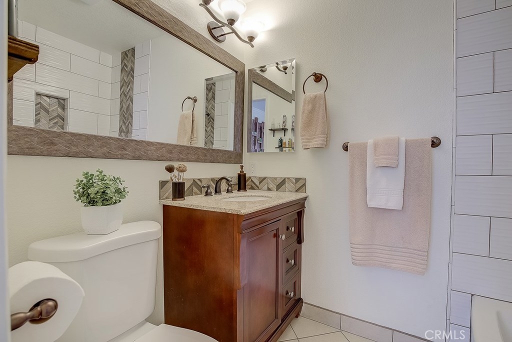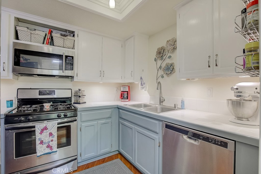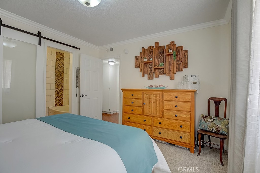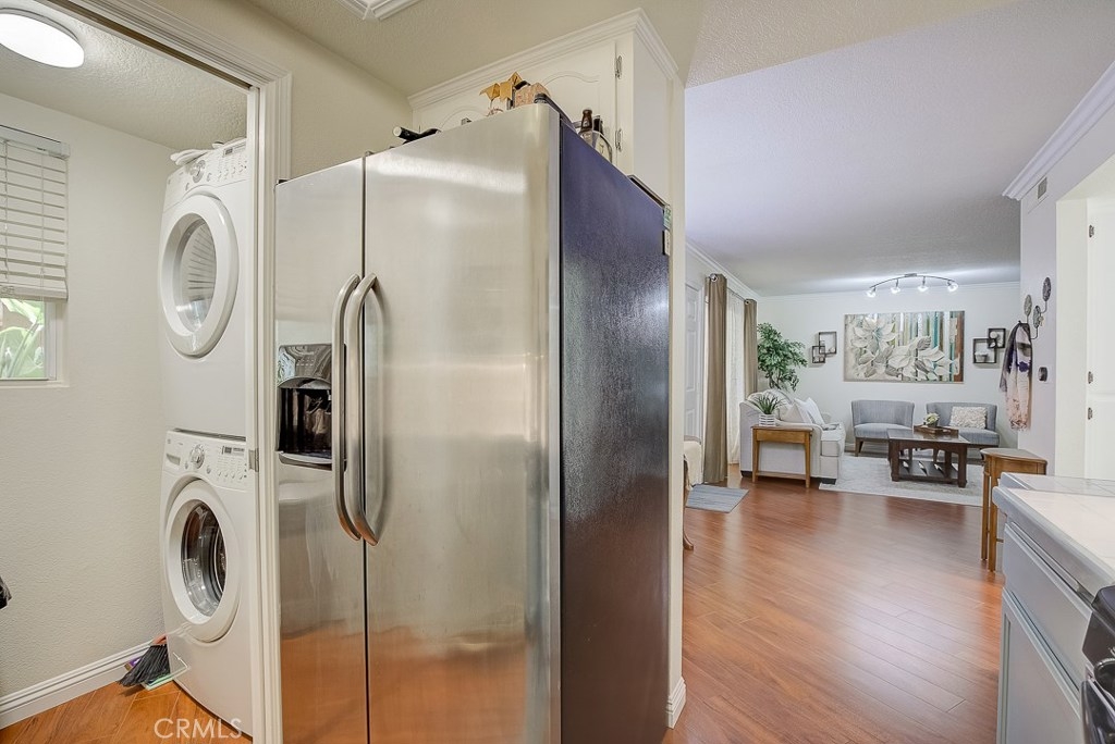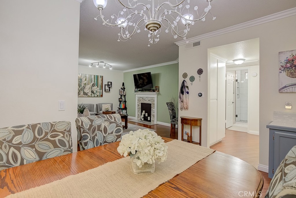 A fully renovated two-bedroom charmer in the Eastside area, this condo is truly turnkey! With beautiful laminate wood floors, central AC, and crown molding throughout, the contemporary colors and custom touches such as the lovely faux fireplace transform this unit into a real home. The kitchen is fresh and bright with painted cabinets, stainless steel appliances, and best of all: washer dryer hookups. The main bedroom has plenty of light and features a walk-in closet and an ensuite, fully updated, bathroom featuring a framed mirror, and tile finishes. The second bedroom is also roomy, features the same soft carpet as the master, and has a long closet. The second bathroom is off the hall and has also been freshly renovated making this a perfect guest room, or ideal for a roommate situation. The complex is conveniently located near shopping, dining, and close to the 405, 605 and 22 freeways. This unit includes two assigned parking spaces in a secure, underground garage and the building amenities comprise a gym, sauna, meeting room, and well-maintained grounds.