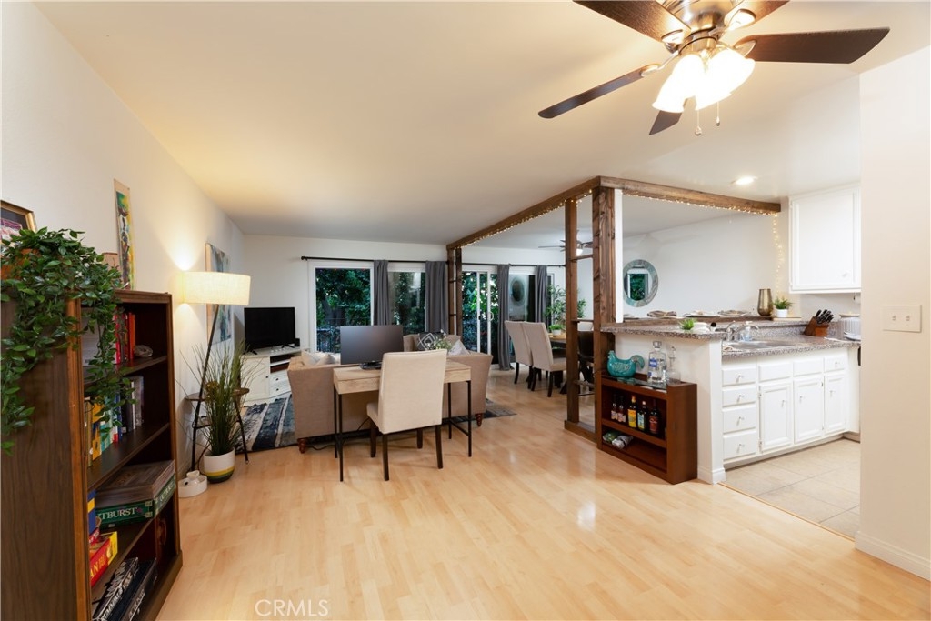Generous 1 bedroom condo with plenty of room to work from home and lounge on your private balcony. This beautiful unit in the meticulously maintained Casa Grande building is less than 1 mile from the beach in Belmont Heights and across the street from the amazing Starling Diner - Look no further! Features of the unit include laminate flooring in main living areas, updated kitchen with granite counters, painted cabinets, and appliances that stay; breakfast bar and open concept dining and living areas with industrial vibe, exposed framing; radiant heating in main living area and private bedroom; and separated tub and shower stall in large bathroom w/new vanity area; and oversized bedroom with triple door wardrobe closet; separated area off of living room and front entry for office space and additional storage in large valet cabinet that can stay; expansive balcony at back of unit is covered, shady, and overlooks the landscaping at side of building. Casa Grande offers a heated pool, community gathering area and firepit, controlled complex entry and onsite community laundry area with laundry appliances that you can pay for with a phone app! HOA covers water, sewer and trash. 1 designated parking spot in sub-level garage w/storage cabinet.