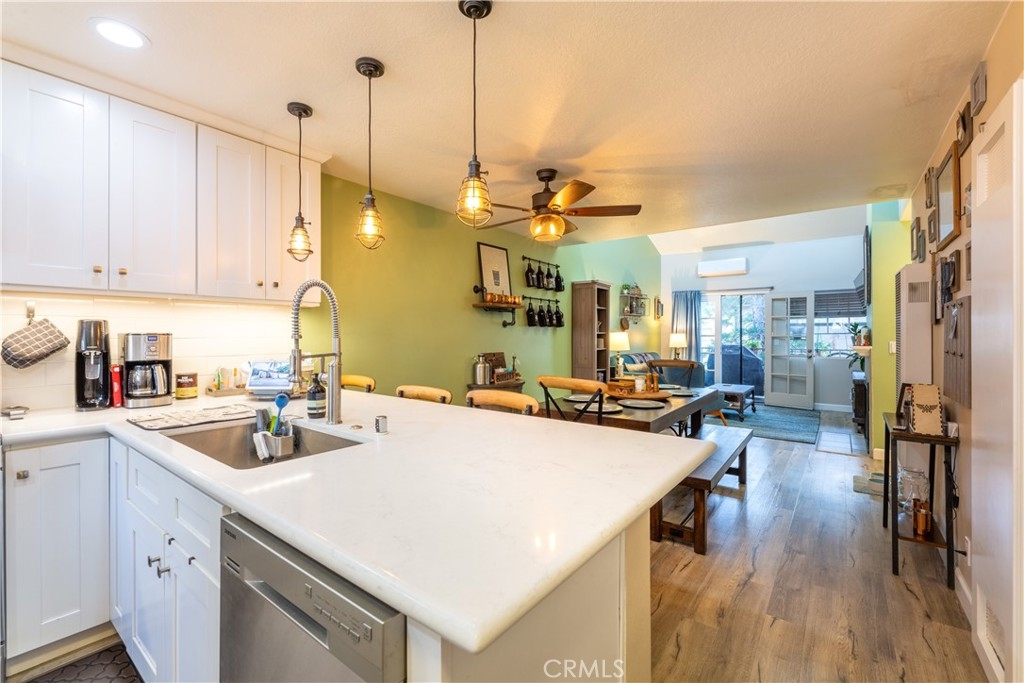 Beautifully Remodeled top floor unit offering an open floor plan, cathedral ceilings and an abundance of natural light. The Spacious Living room with Fire Place Opens to a private deck with new LG washer and dryer in the laundry room. Enjoy your newly remodeled kitchen, soft close cabinets with led lighting and a smooth quartz countertop. All new Samsung Appliances Refrigerator, Stove, Microwave, and Dishwasher. New Laminate Flooring throughout. The Master bathroom is completely remodeled with a porcelain tile shower, new vanity, faucets, light fixtures, and mirror. The second bathroom completely remodeled with ceramic Tile tub and New Vanity, light fixtures, and faucet. Gated community with 2 car parking included along with storage. The location is ideal to local restaurants, bars and shopping and located close to Cal State Long Beach.