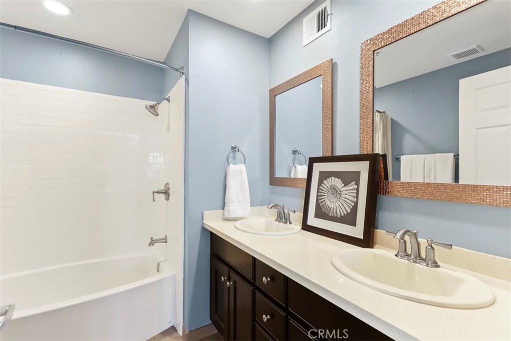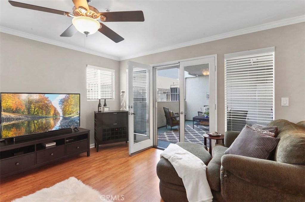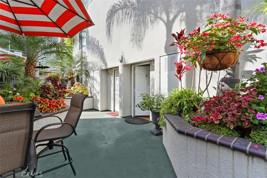 Gorgeous beach living in a sun-drenched 12 unit complex makes this two-story condo a dream to call home. A stylish modern design and spacious floor plan are just the beginning - 819 Atlantic #3 also has two private patios and a plethora of newer updates (appliances and windows). This amazing two bedroom condo is on the ground floor that opens to a public courtyard with landscaping and seating areas. The laminate hardwood floors and crown molding in the living and dining room add an elegant touch to the decor. Multiple windows, as well the as french doors that lead to the first floor patio allow ample light to brighten the space. The partially covered patio offers some privacy and plenty of space for outdoor dining and relaxing. The stately kitchen is a picture of refined chic with white tile counters and gray cabinets, as well as newer stainless steel appliances. Both bedrooms are upstairs for added privacy with plush carpeting and generous-sized walk-in closets. The master bedroom features crown molding, high ceilings, and a private patio area. The attached master bathroom has a double vanity and combined bath tub/shower. This dynamic condo includes an inside laundry closet, and one dedicated parking space. HOA covers Verizon Fios as well.