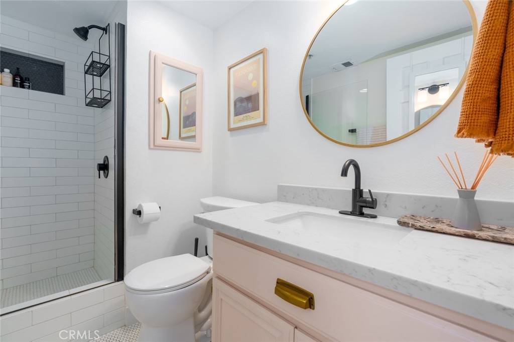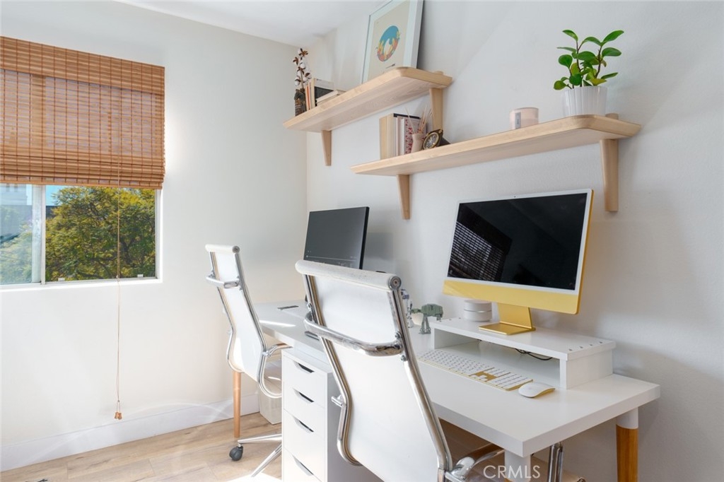 This is it. This stunning 2 Bedroom, 2 Bath condo has lovingly undergone a top to bottom remodel. Let’s start with the new wide-plank laminated flooring throughout. Next up is the kitchen and its sealed butcher block countertops, tiled backsplash, new sink, and appliances that feed seamlessly into the rest of the open-planned first floor. The dining room has custom built-in seating and the living room boasts a new fireplace, mantel, and recessed smart TV. The light-filled primary bedroom features high ceilings, new blinds, custom closets, and a fully-upgraded ensuite bathroom with high design and lux materials. Not surprisingly, the second bathroom shares the same attention to detail as the primary bathroom, creating yet another focal point to the upstairs rooms. Add to that the upgraded laundry room, with its new washer and dryer and you have a living area that few would want to leave. // With more than 500 sq. ft. of remodeled outdoor living space, three private patios on two floors open up the home to take advantage of Southern California's sunny days and warm nights. Whether you’re hosting a BBQ, enjoying a sunset, or relaxing with a book, the patios present the perfect extension of the home. // And don’t forget the smart home enabled light switches and recessed lights, fireplace, ceiling fans, ecobee thermostat, outdoor string lights, Ring doorbell camera, USB enabled outlets, and smart smoke and carbon monoxide detectors that also act as night lights. All controlled with your smartphone, using Homekit, Google Home, or Alexa. Genius! // When you decide to venture out, you will find a walking neighborhood filled with historic Long Beach homes, and incredible offerings like - Rose Park Roasters, Fingerprints Music, Butterscotch, Berlin Bistro, Beachwood BBQ, and Rosemallows, to name a few. // Chateau Marmont boasts a variety of amenities as part of its HOA including professional cleaners and gardeners for the property, Verizon Fios high-speed internet, smart-phone linked callbox, a 1-stop elevator from the garage, an App-accessible camera system around the property, a bicycle and recreational equipment room, and a bountiful community garden in the common area filled with vegetables, herbs, and gardening supplies. The community hosts outdoor movie nights, sporting events, and holiday parties. // There is no question with its thorough and thoughtful design and the offerings of its walkable neighborhood, this place is sure to make you happy to call it home