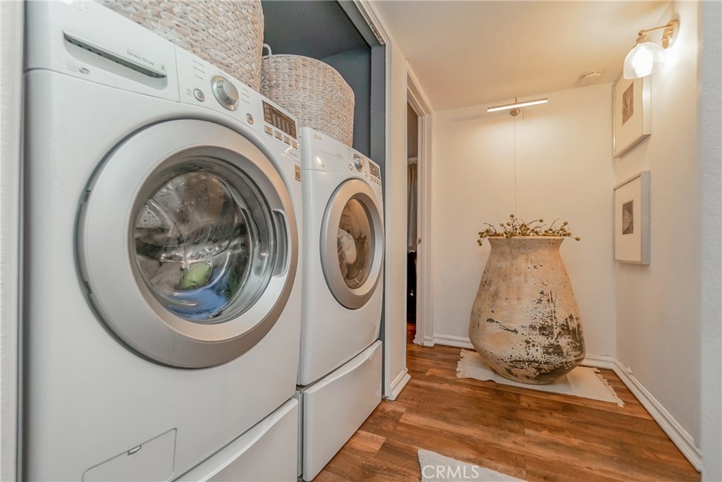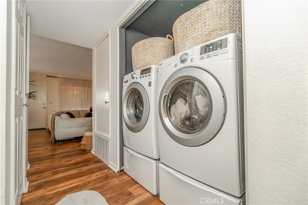 Welcome home! This Beautiful Condominium has two Master bedrooms (ideal for two adults) and has lots of features. The Kitchen has been upgraded, with cabinets, Calacatta Gold countertops (exclusive white marble with deep gray veining and occasional taupe/gold highlights), and stainless steel appliances. It also has laminate wood-like floors throughout the home. There is a Laundry area inside the Condominium, saving you time and money when cleaning your laundry, and it's located right outside the Master bedrooms in the Hallway. Patio located to the left of the front door with an additional storage closet attached. The Complex is safe and quiet with plenty of visitor parking and comes with two assigned gated parking spots. This Condo is stunning and convenient, in an ideal location near the Traffic Circle, Grocery stores, Restaurants, Shopping, Freeways, Universities, Beaches, and Hiking trails. Just 3 miles from the beach. Enjoy a good BBQ on your front patio or a glass of wine at the end of the day. The Community also has a pool that you can enjoy on summer days. Pets Okay! Don't miss out on this opportunity to own this gorgeous Condominium. Schedule your showing today as this home will not last.