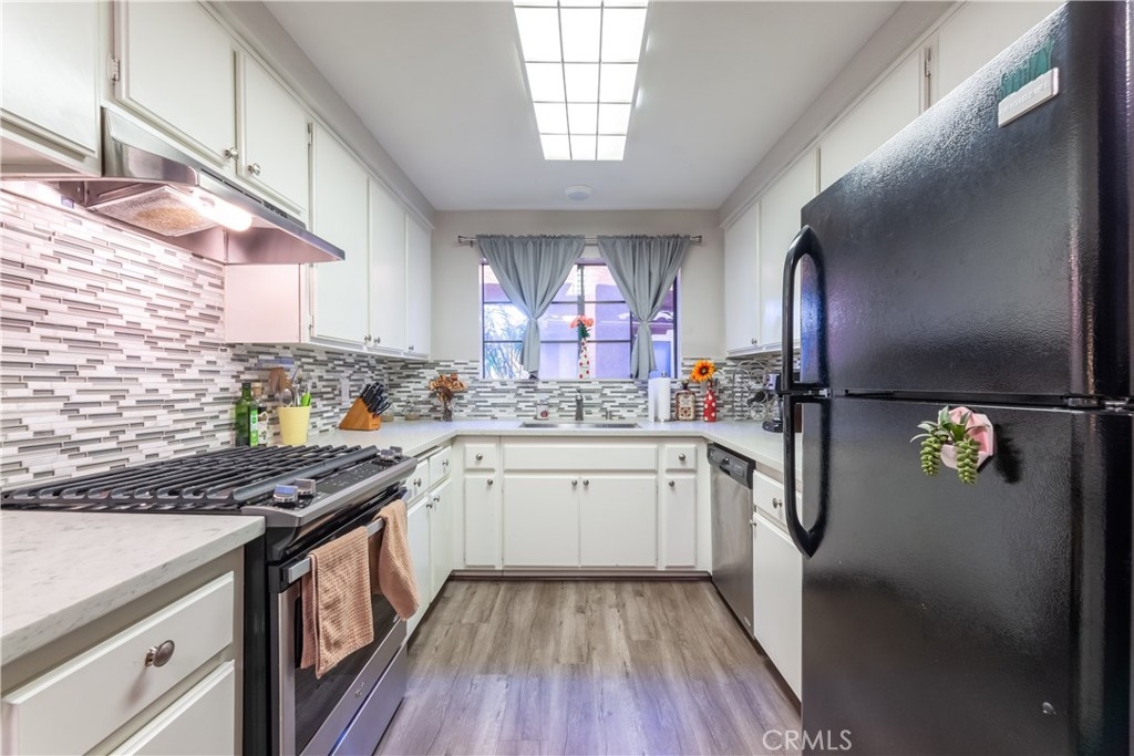 Gorgeously remodeled and updated upstairs condo unit in a lovely, well-maintained, pet-friendly community. This one bedroom, one bath condo has an open floor plan with recessed lighting, a spacious living room with new laminate floors, and a glass slider that opens to the front patio. Remodeled kitchen with modern quartz countertops, glass tile backsplash and stainless steel appliances. Large dining area suitable for a dining room table as well as office space. This fabulous condo has a large inside laundry room with additional storage space! Large master suite with ample closet space and new carpet. The large master bath with dual vanity sinks was recently remodeled with a new sliding glass door shower, new tile flooring, and new quartz countertop. The condo complex comes well equipped with a pool, spa, and outdoor shower within lush and well-maintained grounds. There is one assigned subterranean parking space. This condo is centrally located and within walking distance to dining, shopping, schools, parks, golf courses and close access to the freeway in Long Beach.