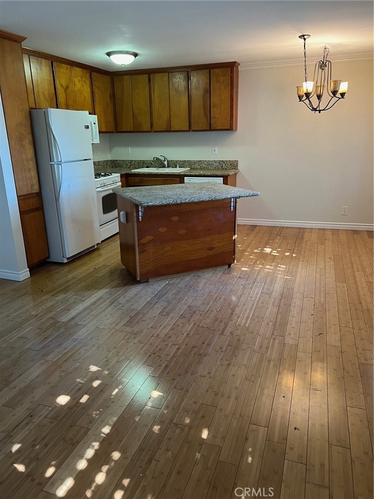 Freshly painted 2-bedroom 2 full bathroom with 2 parking spaces! Large living room is open to the kitchen and dining area complete with bamboo flooring. Kitchen comes with refrigerator, gas stove, dishwasher and granite counter tops. Bedrooms are newly upgraded with new flooring. Master bedroom has walk-in closet and a ceiling fan. Both bedrooms have access to the private balcony. Stacked washer and dryer in unit come with the sale without warranty. Low HOA fee.