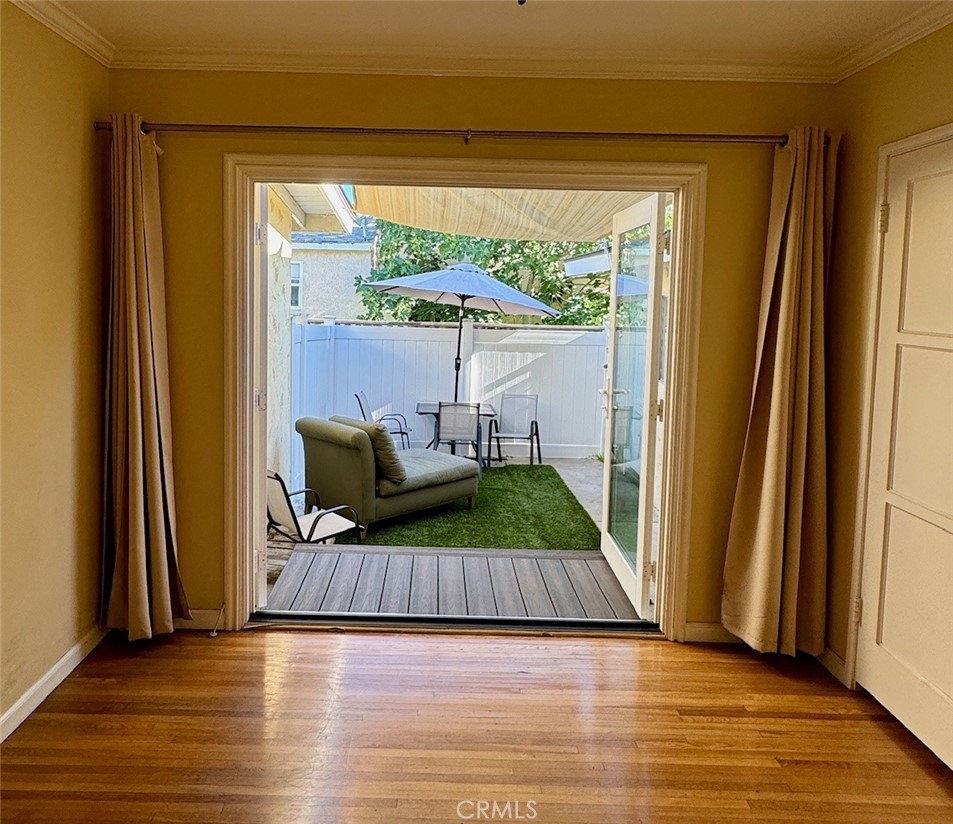 Wake up to a mid-summer morning breeze via custom French doors leading outside to your private oasis! Feeling social? Enjoy a cup of Jo on your back porch and greet either of the 9 additional neighbors/units in the complex. Or walk a few steps to your gated 1-car garage and tandem parking space which might be used as an art studio, or office, or keeping it simple, as a garage with storage. The tasteful simplicity of the unit is exuded with its’ original hardwood floors, dual pane windows, recessed lighting, baseboards, and molding. There are many perks to calling 4801 Clark Avenue #2 home, including free communal laundry and water covered in the low HOA dues of $229 per month! With a walkable score of 72, there’s plenty to do on foot with only a hop, skip, or jump away including several dining options, gyms, the Lakewood Mall, various government buildings, banks, The Home Depot, grocery stores, and the Long Beach Airport. The 90808 neighborhood is highly sought after for its award-winning schools, parks and recreation, and because it epitomizes the sweetness of suburbia!