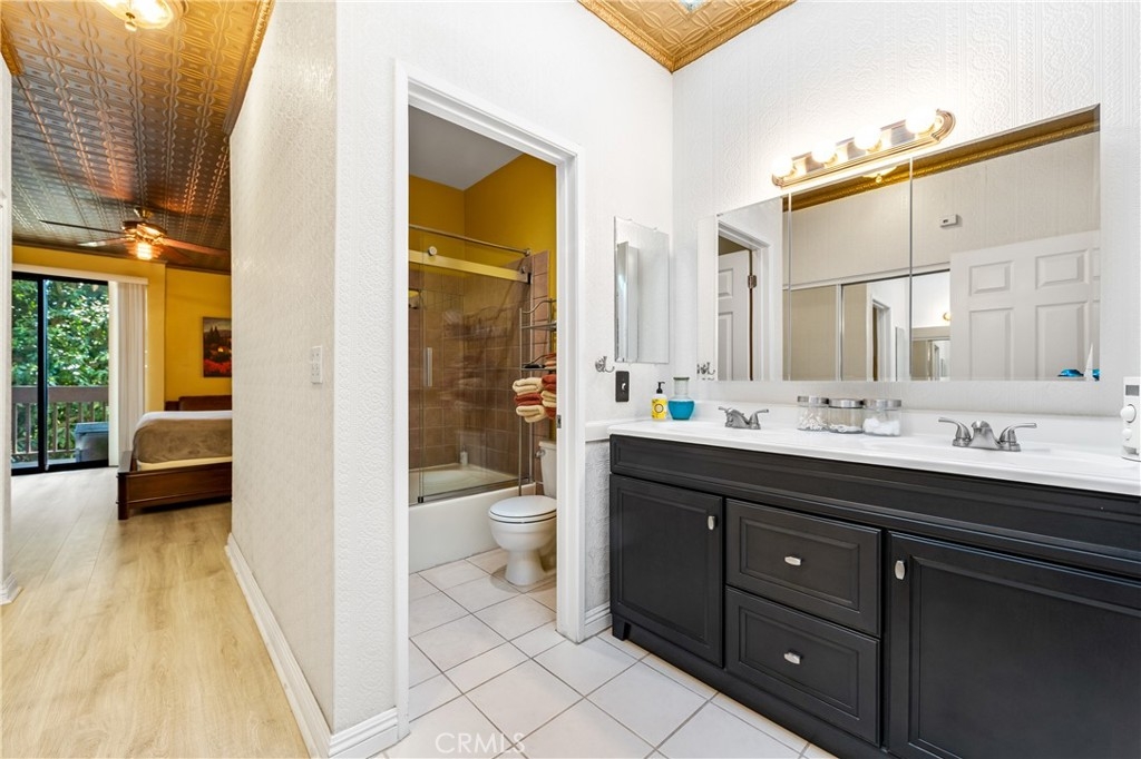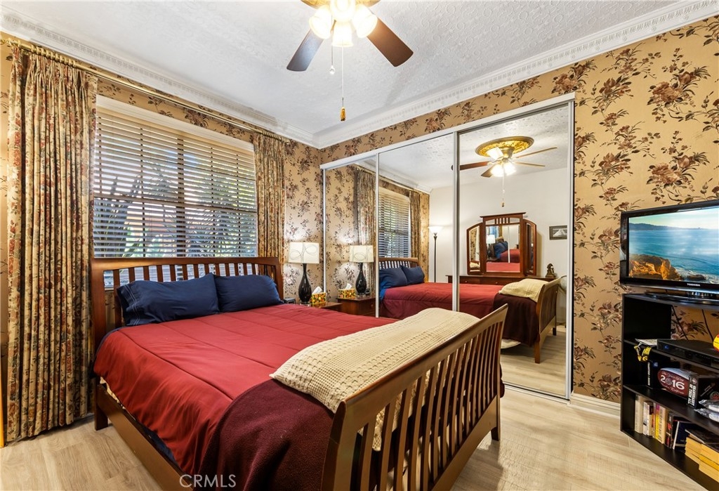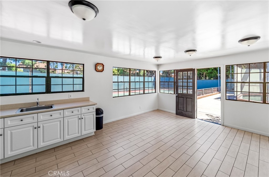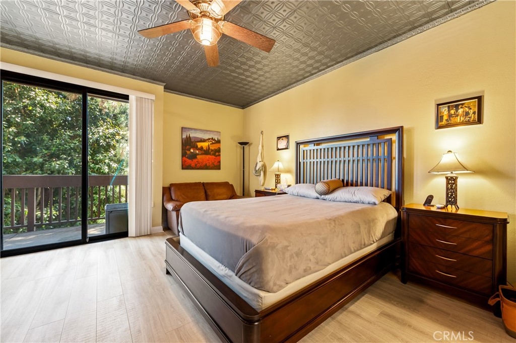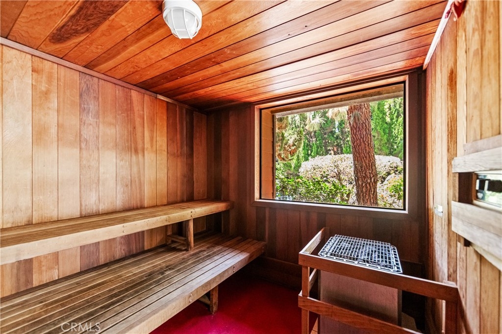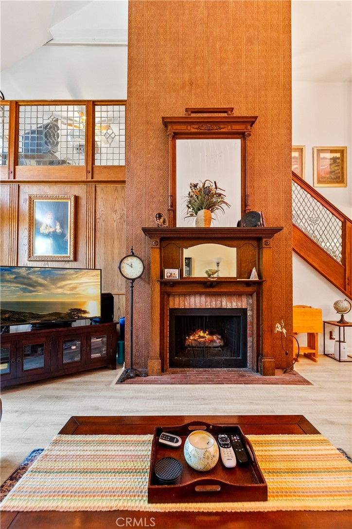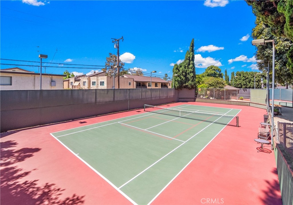Clark Terrace offers a one-of-a-kind setting with towering pine trees, cascading waterfalls, and lush landscaping that feels like a serene escape in the city. This top-floor condo includes 2 bedrooms, 2 bathrooms, a spacious loft, and two gated parking spaces with an EV outlet. The living room boasts soaring cathedral ceilings, custom stained-glass, wood accents, and a dramatic gas fireplace with an antique mantel. The spacious dining area also features a built-in wet bar with extra storage. Unique architectural details include leaded-glass railing panels along the dining area and staircase, adding light and artistry to the home. The loft overlooks the main living space and extends to its own balcony, creating a treehouse-like retreat; ideal for a home office, creative studio, or lounge. The kitchen is designed with granite counters and rich wood cabinetry. Both bedrooms are generously sized with tin-style ceilings, while the primary suite offers a large walk-in closet and balcony access. Resort-style amenities include a pool, spa, sauna, BBQ area, and tennis courts. Combined with the tranquil setting, this home feels like a getaway while still being close to CSULB, shopping, dining, freeways, and the beach.