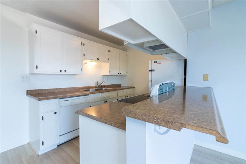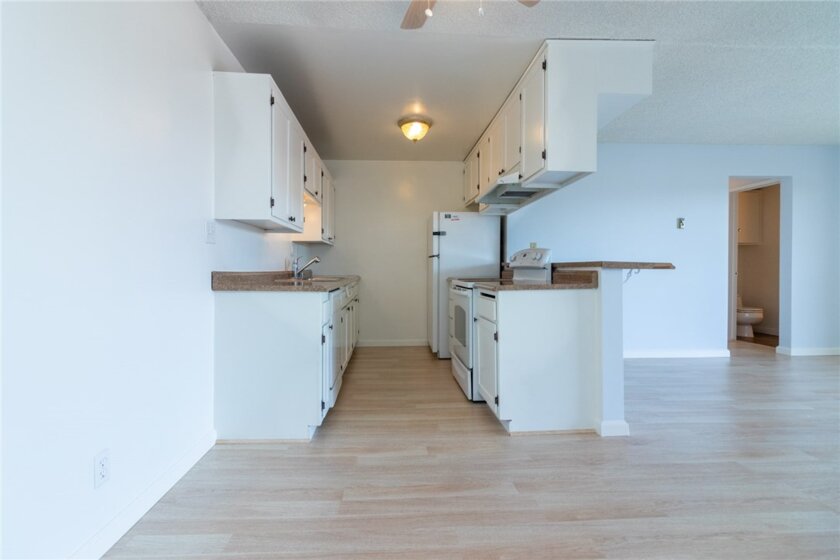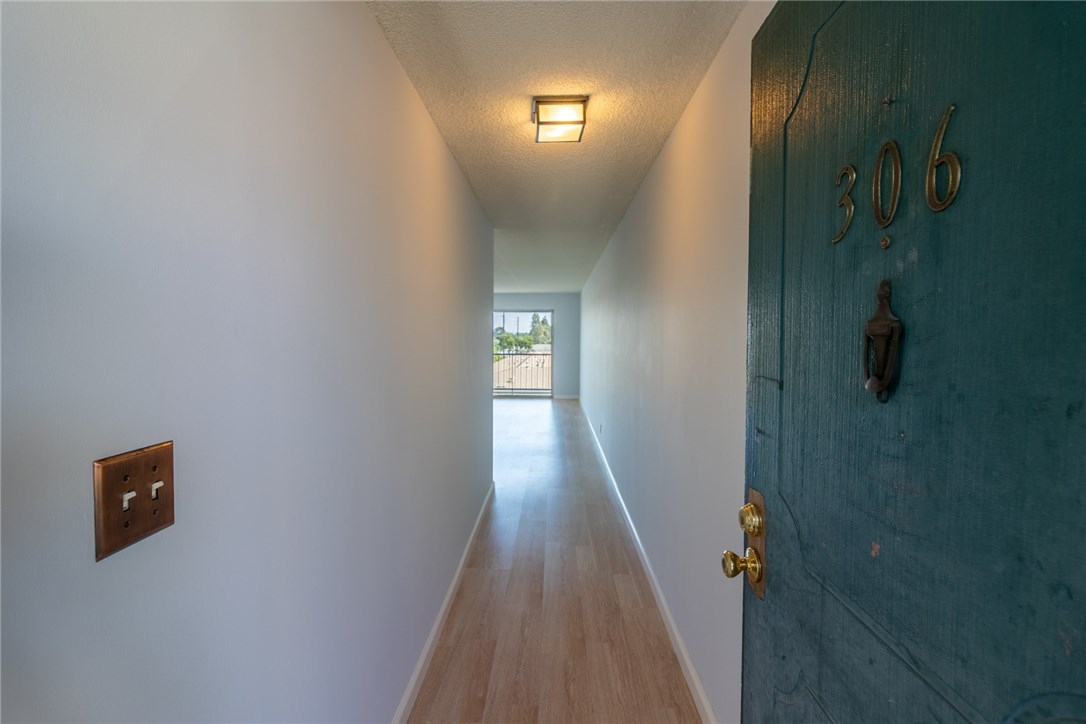 Location! Location! Location! This is a great starter condo for a first time buyer. Corner unit. Top floor. Unit has been upgraded with new laminate flooring, freshly painted through out. New base boards. All thermostats have been replaced. Sliding glass door serviced and new lock on it. Ready for a home owner to make it your home.Community Recreation room on the top floor, access thru the elevator. Community pool. Washer and dryers in the first floor of building. 1 car subterranean parking with some storage. New Starbucks opened across the street and several restaurants, grocery stores across the street.