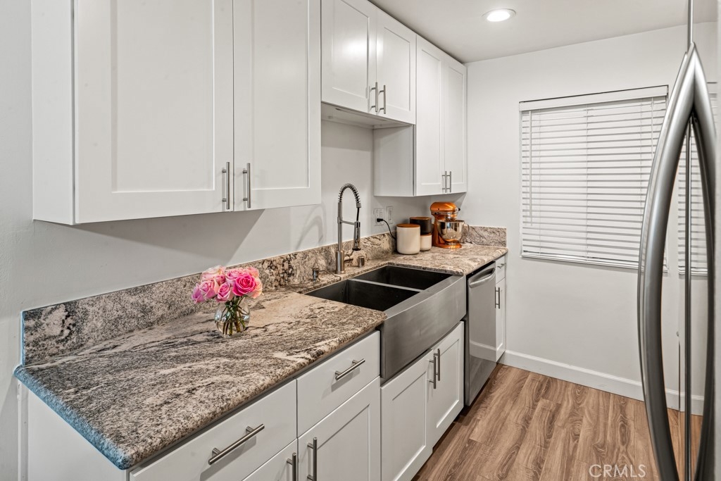 Welcome to this wonderful light and bright REMODELED home! This private, quiet, remodeled 2 bedroom, 2 bath home is turnkey and move-in ready. Once inside you'll notice the care and attention to detail the owners have put into this wonderful home. The remodeled kitchen features beautiful white cabinets, granite counters, stainless steel appliances, and recessed lighting. The home has new paint and flooring throughout. Both baths have been updated with new tile flooring, vanities, bath fixtures, and lighting. Other upgrading includes a updated hall cabinets with new cabinet doors, new lighting in the living room and bedrooms. new A/C unit, climate control panels, home security system with sensors on all doors and windows including motion detector in living room. There is a large patio off the living room for entertaining, and a private rear entrance. Just steps away to Vons grocery store, CVS pharmacy, shopping, restaurants, and a short 1.5 miles to Cal State Long Beach. An easy bike ride to the beach and Belmont Shore.