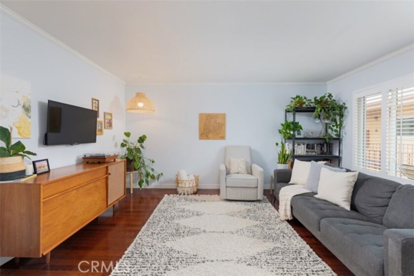 Welcome home to this super clean and sharp top floor condo in the heart of Bluff Heights! Spacious two bedroom two bath courtyard style condo in a small, well-maintained mid-century building with secured access, secured assigned parking, storage, elevator and swimming pool. Laminate wood flooring, scraped ceilings, crown moulding, and an open floor plan with lots of square footage and big windows with views of the mountains makes this home as comfortable as it is conveniently located to shopping, dining, the Broadway corridor and Belmont Shores. Open kitchen with shaker style cabinets, stainless steel appliances, a breakfast bar and separate dining area. Both bedrooms are very large, the primary bedroom features an en-suite bathroom updated with a quartz-topped vanity and a spacious walk-in closet. The second bedroom is equally as large as the primary bedroom with a wall-to-wall mirrored closet. The hallway guest bathroom has a separate, updated vanity area with a quartz topped vanity and tons of storage, updated shower and tub with marble-style tile and neutral toned glass accent tile. The living room is spacious, open and has wonderful natural light, all of the windows have custom plantation shutters. Pet friendly, quiet building in a charming neighborhood full of Craftsman homes and in close proximity to freeway access and shopping and dining.