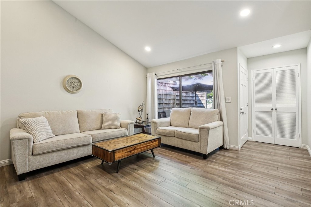 Discover luxurious living at this exquisite three-bedroom, two-bathroom condo in the prestigious Country Club Gardens. Step through the front gate and find yourself in a spacious, private outdoor area perfect for entertaining, relaxing, or enjoying a barbecue. Conveniently located just steps from the community pool, this home combines accessibility with privacy. The interior boasts a large living room with vaulted ceilings, abundant natural light from sliding doors leading to the patio, and a charming gas fireplace for cozy evenings. The kitchen has been fully updated with new appliances, extensive storage options, and features an attached breakfast bar. Adjacent to the kitchen is a dining area suitable for family meals and gatherings. Ascend to the second floor where you will find three well-appointed bedrooms, including a spacious primary suite with an attached vanity area and its own private patio. Each bedroom offers comfort and style, with the primary suite providing a perfect retreat. Practical features of this home include central heating and air conditioning, a large two-car garage with additional storage and laundry hook-ups, new water heater and recessed lighting. The front patio adds a quaint touch to the home's welcoming facade. Country Club Gardens is a secure, gated community with lush grounds, a pool, spa, and recently replaced roofs, enhancing both security and aesthetic appeal. Located near Los Cerritos Park, Virginia Country Club, the community offers easy access to freeways, and the vibrant Bixby Knolls with its shops, restaurants, and entertainment options. Embrace a lifestyle of convenience and luxury at this exceptional Long Beach home.