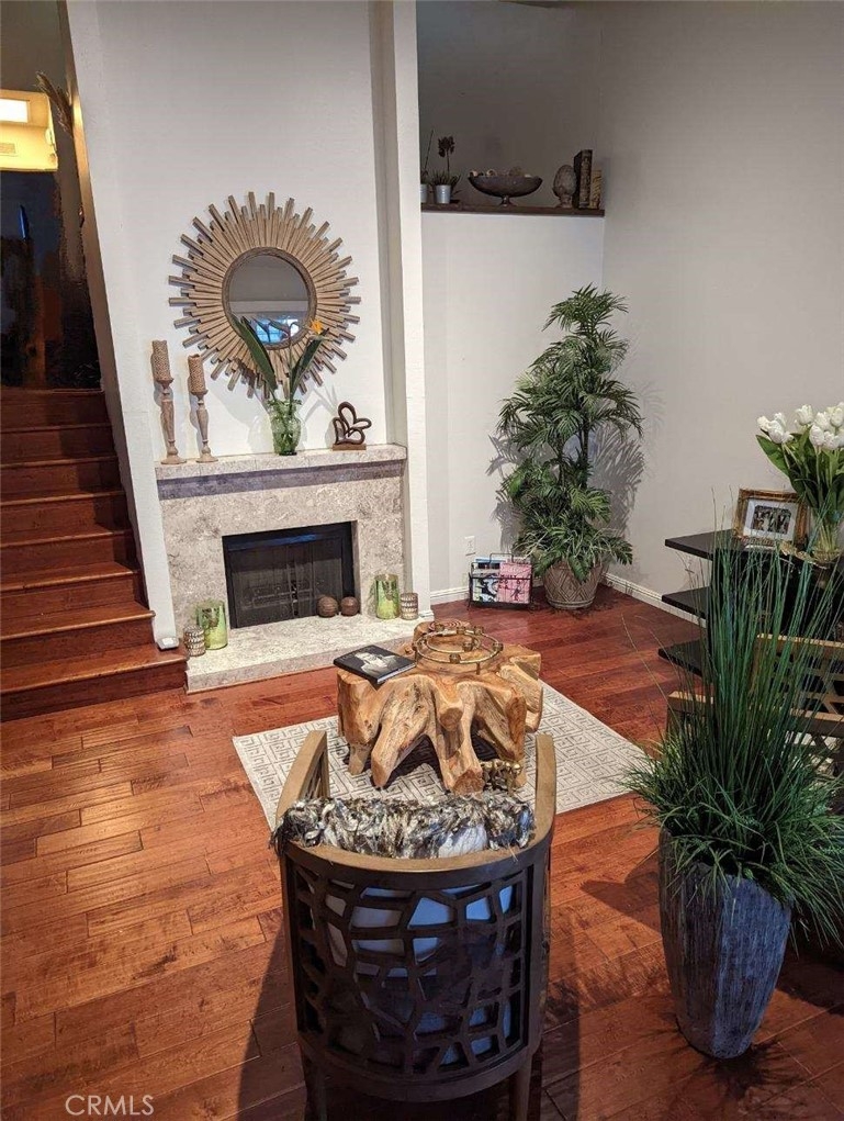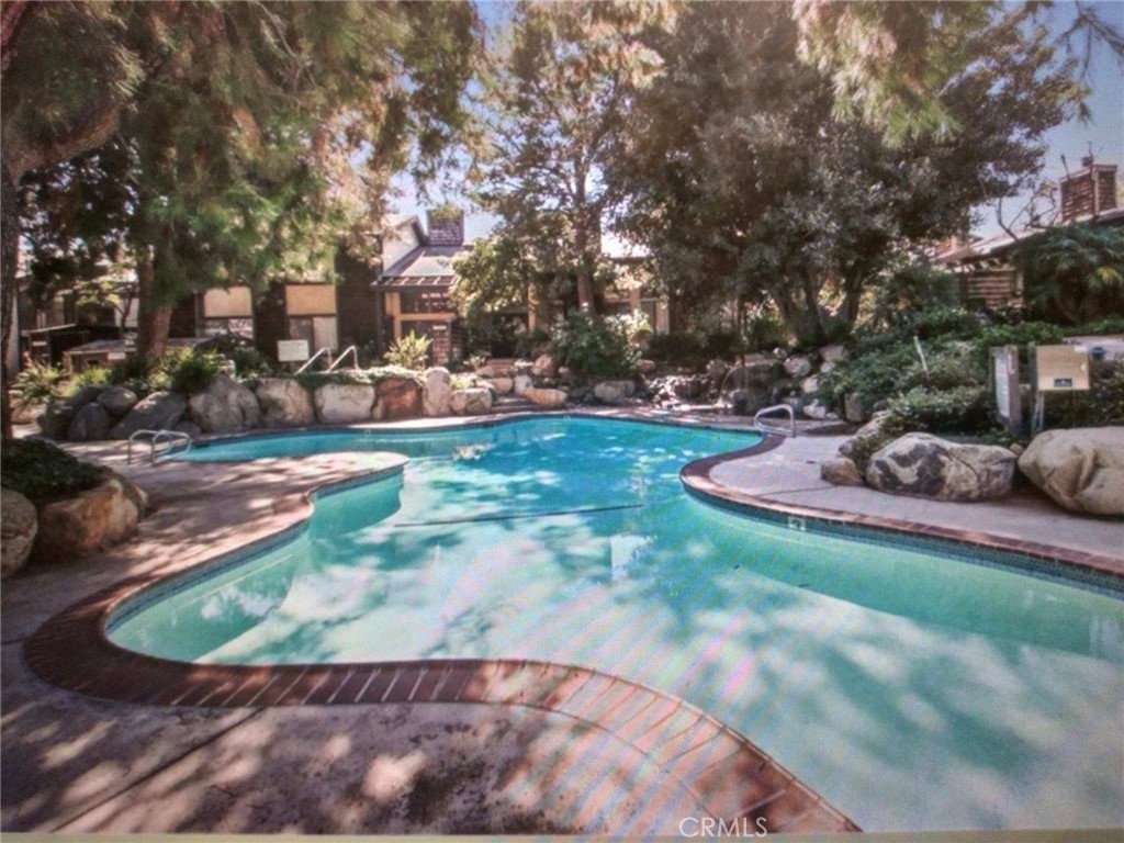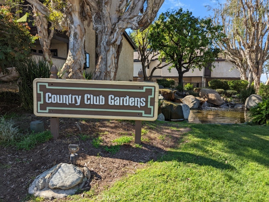 This 2 bed, 2 bath end unit, ground level home has only 1 common wall located in the highly desirable Community of Country Club Gardens. Inviting living and dining area with high ceilings and a cozy gas fireplace. Large master bedroom with a spacious closet, master bath has bath and shower with a glass enclosure and ample storage. Hardwood floors throughout except for the tile floor in the kitchen. Inside laundry hook ups for washer and dryer. attached 2-car garage. Enjoy the HOA amenities of a sparkling pool/spa and lush grounds.