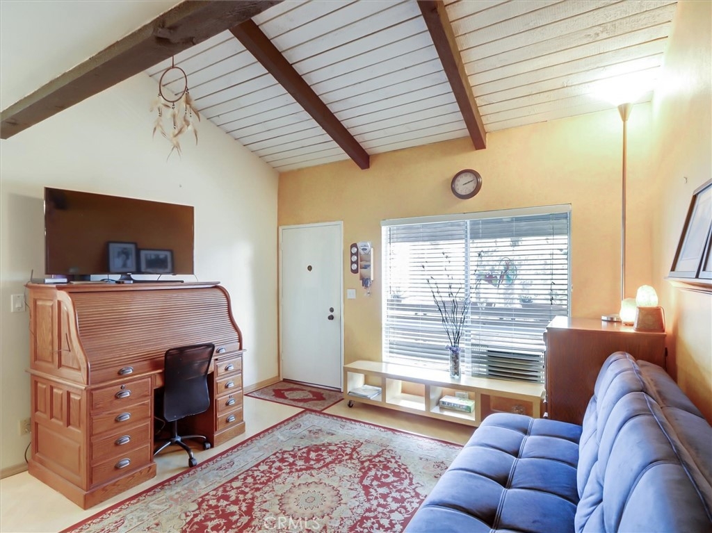 Welcome to this 2 bed, 2 bathroom condo that has potential to be just the way you want it. This upper unit offers gorgeous cathedral style ceilings with stunning exposed beams giving you a bright and airy feeling throughout the home. The Country Club Villas, in Bixby Knolls is a highly desirable neighborhood located in Long Beach. With a covered balcony and ample street parking and a designated two car garage with a gated driveway you and your loved ones can enjoy your privacy. This location offers easy access to the 405/710 freeways and a well-maintained community landscape. You will enjoy beautiful trees and walking paths with a park-like setting along with community features that include pools, spa, tennis courts and a clubhouse!
