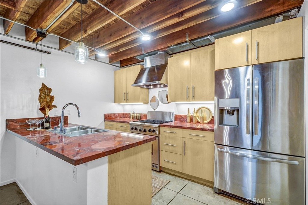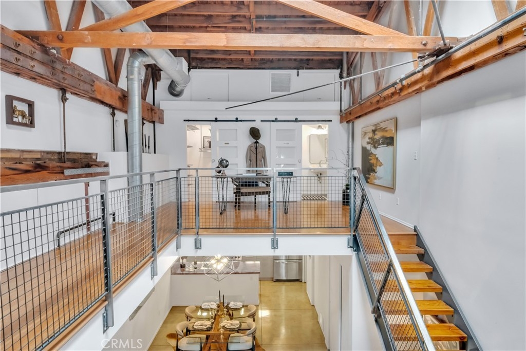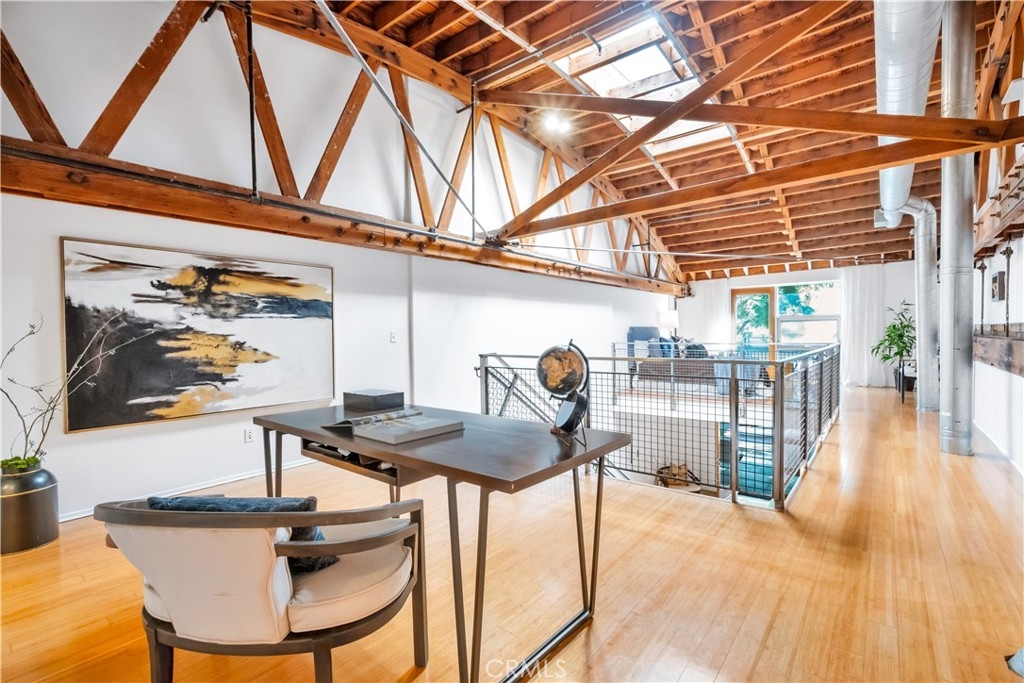Architectural Loft Living in the Heart of Downtown Long Beach. Welcome to Courtyard Lofts, an award-winning development designed by renowned local architecture firm Studio One Eleven. This boutique community features 16 industrial-style lofts thoughtfully arranged around a tranquil, landscaped courtyard. Recognized with the prestigious 2009 AIA (American Institute of Architects) Housing Award, Courtyard Lofts sets the standard for innovative urban design.Rarely available, this striking two-level residence embodies architectural distinction. Soaring nearly 25-foot open-beam truss ceilings, oversized skylights, and gallery-like proportions fill the space with natural light and dramatic volume. Two private, tree-shaded patios expand the living experience outdoors, while a sleek catwalk and floating fireplace serve as sculptural centerpieces.The open-concept main level seamlessly connects the living, dining, and chef’s kitchen, which is outfitted with premium finishes and fixtures. The well-designed floor plan includes two bathrooms, a generous walk-in closet, and abundant storage throughout—including a spacious two-car garage with additional storage capacity. Upstairs, the airy lofted bedroom suite opens to a private balcony with views—perfect for a peaceful morning or evening retreat. Additional features include polished concrete floors, an in-unit washer and dryer, and central HVAC. Located just steps from Historic Pine Avenue, The Promenade, Shoreline Village, and the beach, this exceptional home offers the very best of sophisticated urban living, wrapped in architectural pedigree and modern comfort.