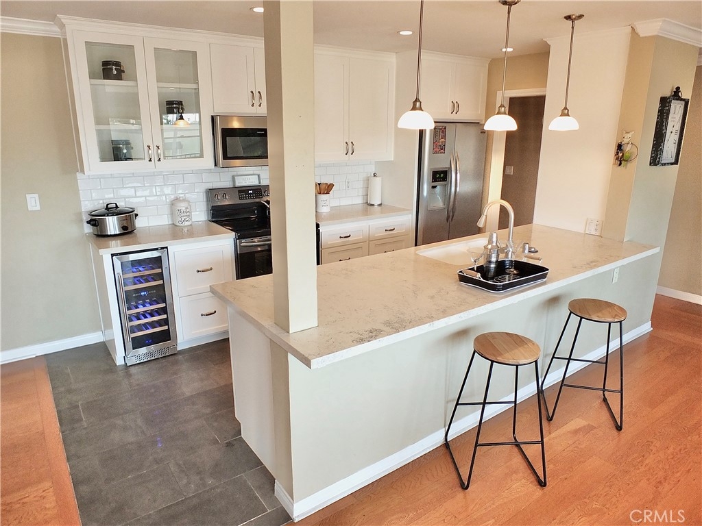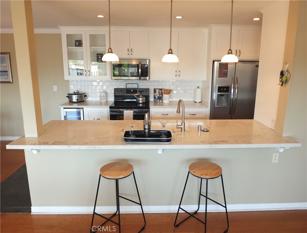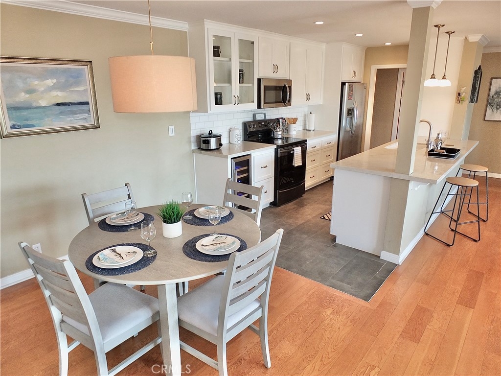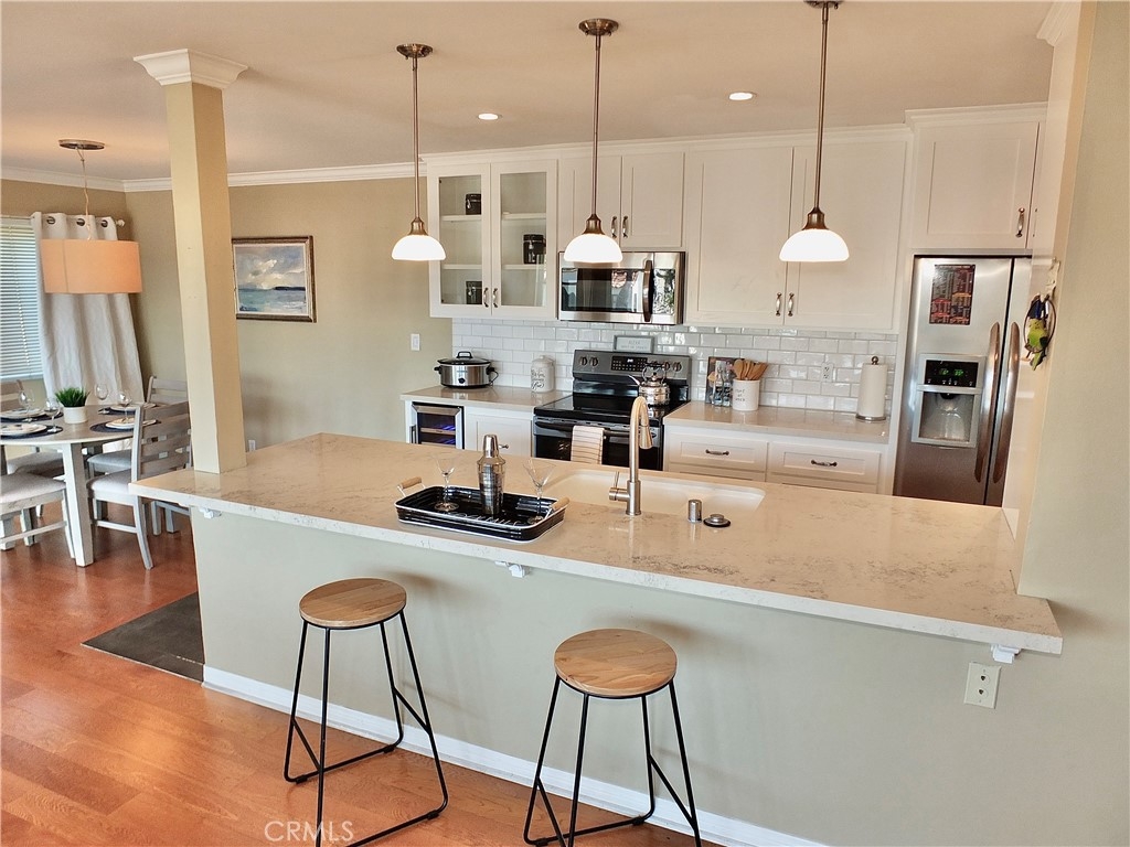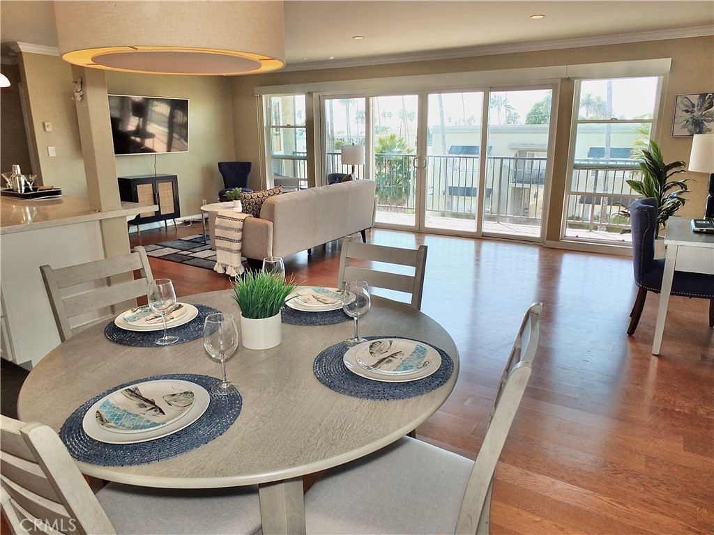 This is a stunning Ocean View condo, very large, with its own inside Laundry/Utility Room with side by side washer and dryer, and two Side by Side secure parking spaces with additional storage. Enter the building through a beautiful glass lobby and take the elevator up where your own little slice of paradise awaits! Formal entry and foyer leads to the Primary Suite featuring a walk-in closet and it's own remodeled bath, convenient access to the large laundry/utility room, additional storage, and more! Remodeled hall bath is convenient to the additional large bedroom with walk-in closet. The gorgeous kitchen is a chef's dream, with all appliance (even a wine fridge) included. The kitchen is open to the dining room and the living room where the light from the long balcony illuminates the area. Breakfast bar is perfect for casual dining. Gleaming hardwood floors, crown and base mouldings and more! Added bonus is the dedicated electric service to the parking spaces, tied in with this unit's meter, which bring extra lighting and plugs for everything electric. Close to the sea, the sand, the pier, shopping, and fabulous restaurants. Enjoy year-round ocean breezes!