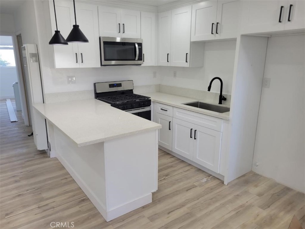 Welcome to your new home. This fully upgraded 2 bedroom, 1 bathroom condo features 2 spacious bedrooms, 1 full bath with a walk in shower. Enjoy cooking in a completely remodeled kitchen with brand new stove and microwave. Kitchen has new countertops and light fixtures. New natural wood laminate floors throughout. Community pool and covered carport available. Lots to do in the city of Long Beach and this home is close to freeways, shopping, schools, parks and beaches. 4 miles to Beaches. 3-4 miles to Long Beach airport and downtown. 17 miles to Los Angeles Bring your buyers!