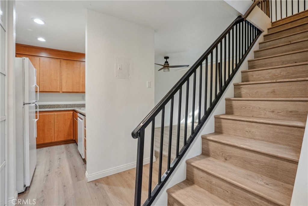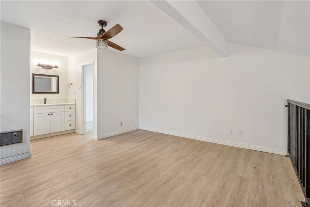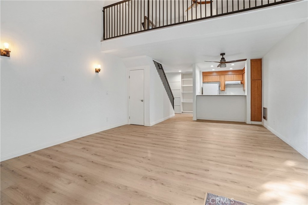 Proudly introducing this amazing 1-bedroom, 1-bath loft-style condo offering 745 sq. ft. of modern living in the beautifully maintained El Dorado Lakes community. Step inside and be greeted by luxurious new vinyl plank flooring and an open-concept design featuring high ceilings and a unique wood-burning fireplace. The living and dining areas flow seamlessly into a functional kitchen with quality cabinets, recessed lighting, and a breakfast bar for casual dining. Double-pane windows and a sliding glass door fill the space with natural light and lead to your private patio, where you can relax while taking in the tranquil water features and lush surroundings. The upstairs loft bedroom boasts a spacious en-suite bathroom with quartz countertops, a walk-in closet, and fresh paint for a clean, modern feel. Positioned on 13+ acres of picturesque grounds with lakes, streams, and vibrant wildlife, this pet-friendly community offers incredible amenities, including 2 tennis courts, 2 pools & spas, clubhouse & ping-pong tables, game room, and workout room. Additional conveniences include a designated carport with storage, on-site laundry close to the unit, and easy access to local attractions. Walk to El Dorado Park, featuring a dog park, nature center, golf course, and a lake. Enjoy proximity to CSULB, Belmont Shore and the beach!!
