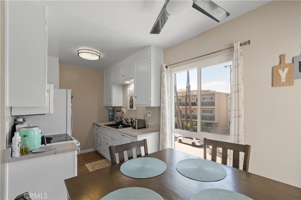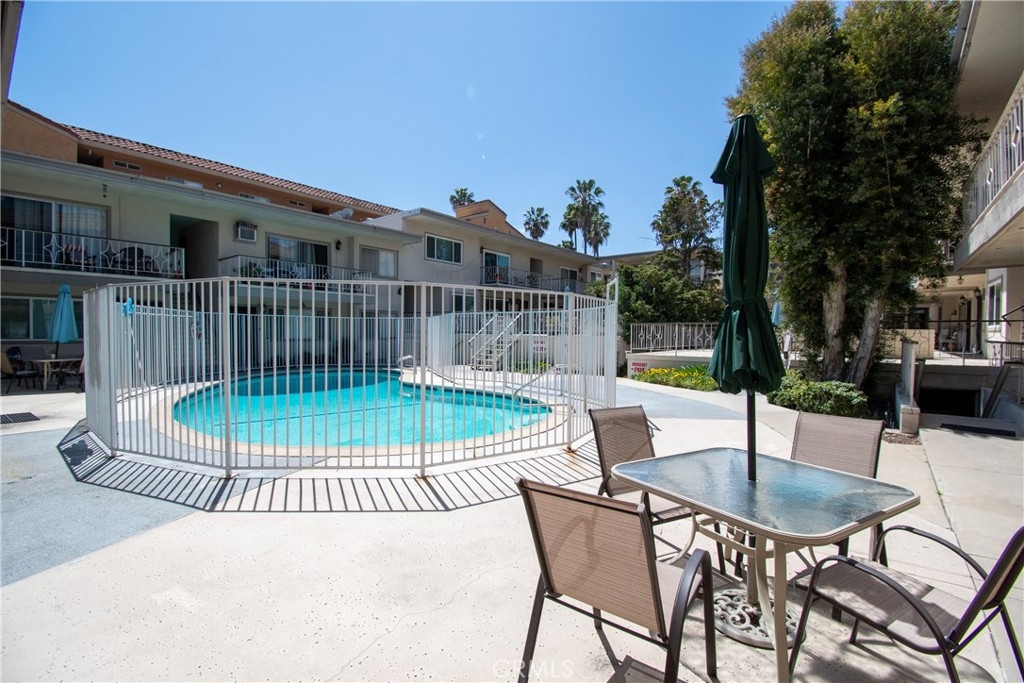 Great end unit condominium in the highly sought after Bixby Knolls Neighborhood which includes Blue Ribbon Schools. This is an amazing 2 bedroom, 2 bath condo in the secure gated Elmwood Villas. Bedrooms have large closets and there is a walk in closet in the hallway with lots of storage space. Newer Laminate flooring throughout. New interior paint. Remodeled Bathrooms. New Dual Pane windows and sliding glass door. HOA covers water and trash. This is a top floor end unit with a private patio and one parking space located in the gated subterranean parking garage. A quite complex in walking distance to great restaurants/shopping and close to the 405 /710 Freeways. You don't want to miss this one!!!