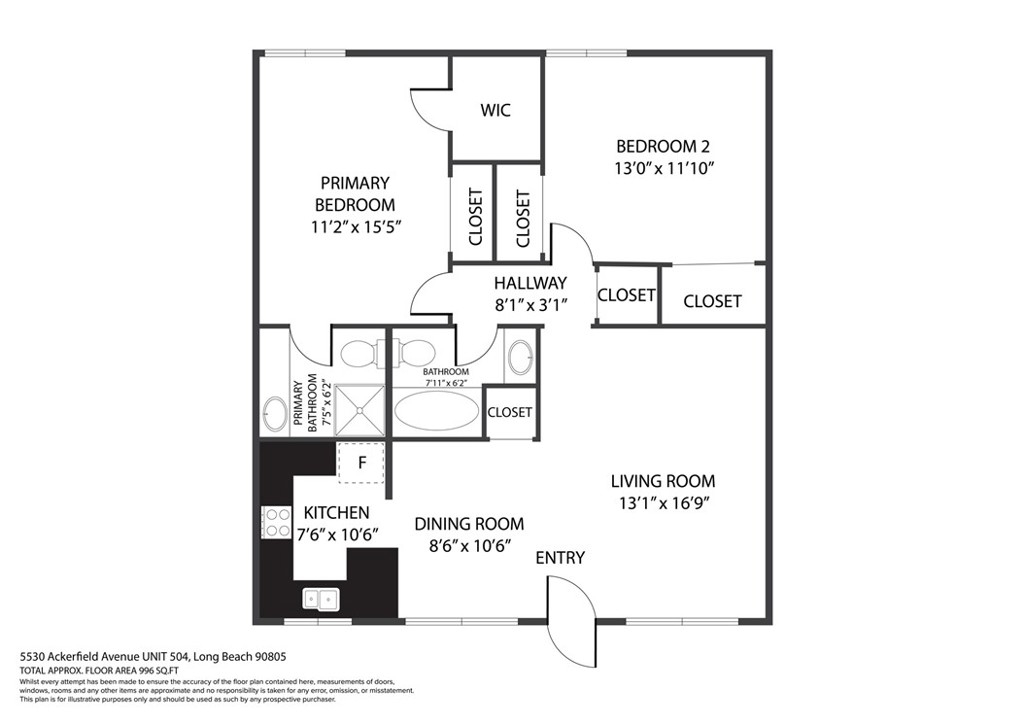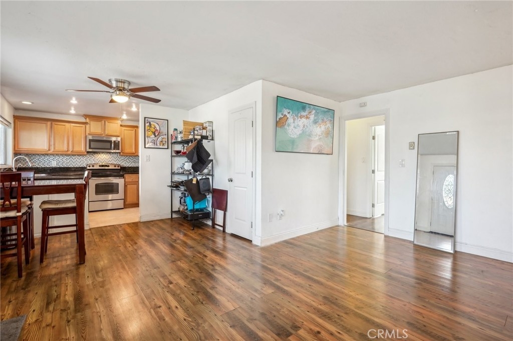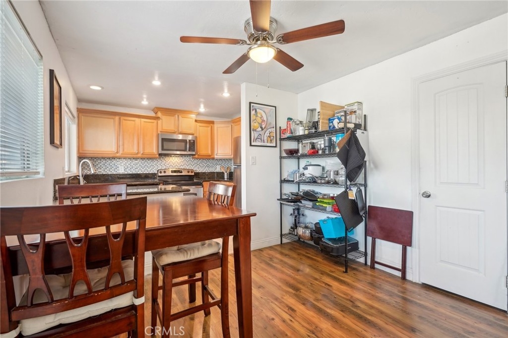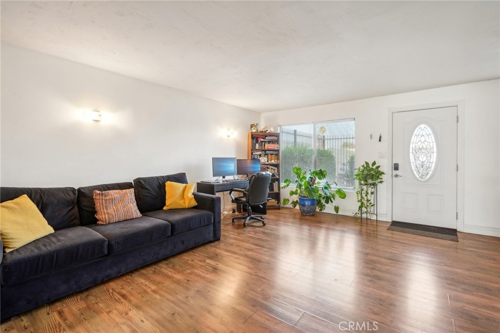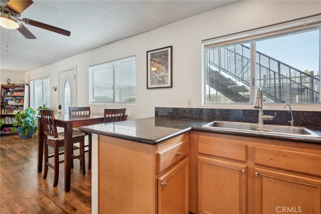 Beautiful and spacious two-bedroom, two-bath condo in Long Beach. This home features laminate and tile flooring throughout. The living area is generous in size and adjacent to the dining room, which connects to the kitchen. The kitchen boasts recessed lighting, granite countertops, stainless steel appliances, a custom backsplash, and custom cabinets. A window over the sink provides a lovely view outside. The primary bedroom includes laminate flooring, a large closet, and a private bathroom with granite counters and a glass shower. This unit also comes with two covered parking spots and is conveniently located near restaurants, schools, and transportation.