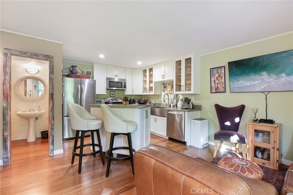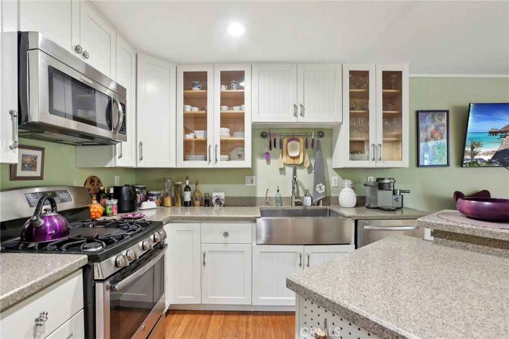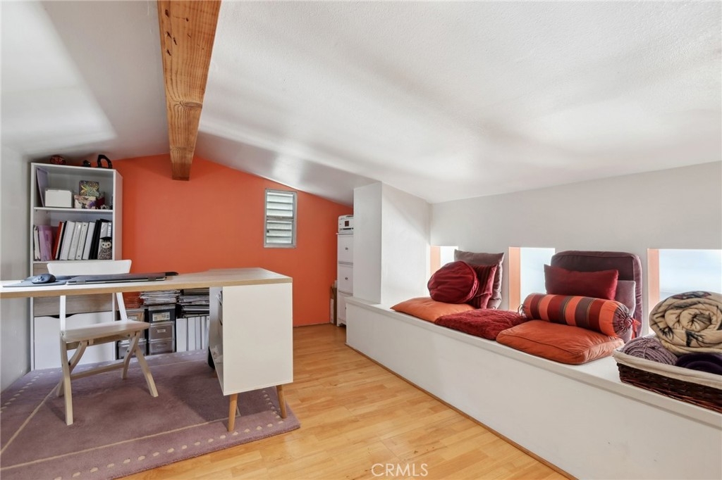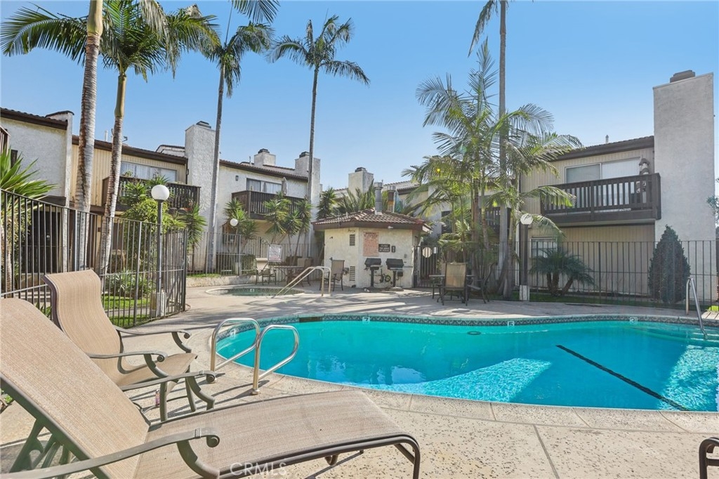 This quaint Highland Hacienda Townhome, nestled between Bixby Knolls and Signal Hill, offers 1 bedroom, 1.5 bathrooms, and a versatile loft space (additional permitted 200 sq. ft.). A charming garden entry welcomes you into this turnkey, move-in ready home, featuring bamboo wood floors, new windows, and soft-close cabinets. The spacious upstairs Primary Suite boasts a cedar-lined walk-in closet and a private balcony with city views. Additional highlights include a tankless water heater, interior laundry, and an attached single-car garage with direct home access. Located in a well-maintained community with low HOA dues, residents enjoy amenities such as a pool, spa jacuzzi, and BBQ grills. With extensive residential street parking and easy access to freeways, shopping, dining, hospitals, colleges, sightseeing, and the beach, this home offers both comfort and convenience!