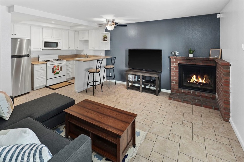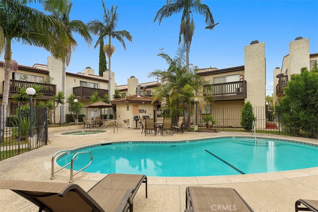 Welcome to your new townhome in the Bixby Knolls adjacent area! This gorgeous move-in ready townhome is comprised of 1 Bedroom and 1.5 Baths, 2 levels, and is filled with recent renovations! The front door faces a green space, so you come home to a quiet entryway into a cozy living room with a corner fireplace shared with open space to the kitchen. The front window is a newly installed Milgard dual pane that lets tons of natural light in! The open kitchen is fully equipped with a refrigerator, stove, microwave and dishwasher. The main ground floor also has its own guest bathroom, and lots of storage under the stairs. Upstairs is a large master bedroom with high vaulted ceilings, recently installed vinyl plank flooring, a mini split A/C and a large, sunny balcony accessed by newly installed patio slider doors, which are also Milgard. Also upstairs is a separate laundry room with a washer and dryer and plenty of cupboards and storage. Last but not least, this property comes with a private single car garage with storage cabinets! The garage door is automatically controlled, and is a new mechanism. The community, which is called Highland Hacienda Condominiums, has a sparkling pool and hot tub, and is a well maintained community located close to the freeways, Starbucks, Applebee's, Home Depot, Target, breweries, and many other stores and restaurants in nearby Signal Hill and Bixby Knolls. Don't miss this great home! FHA approved.