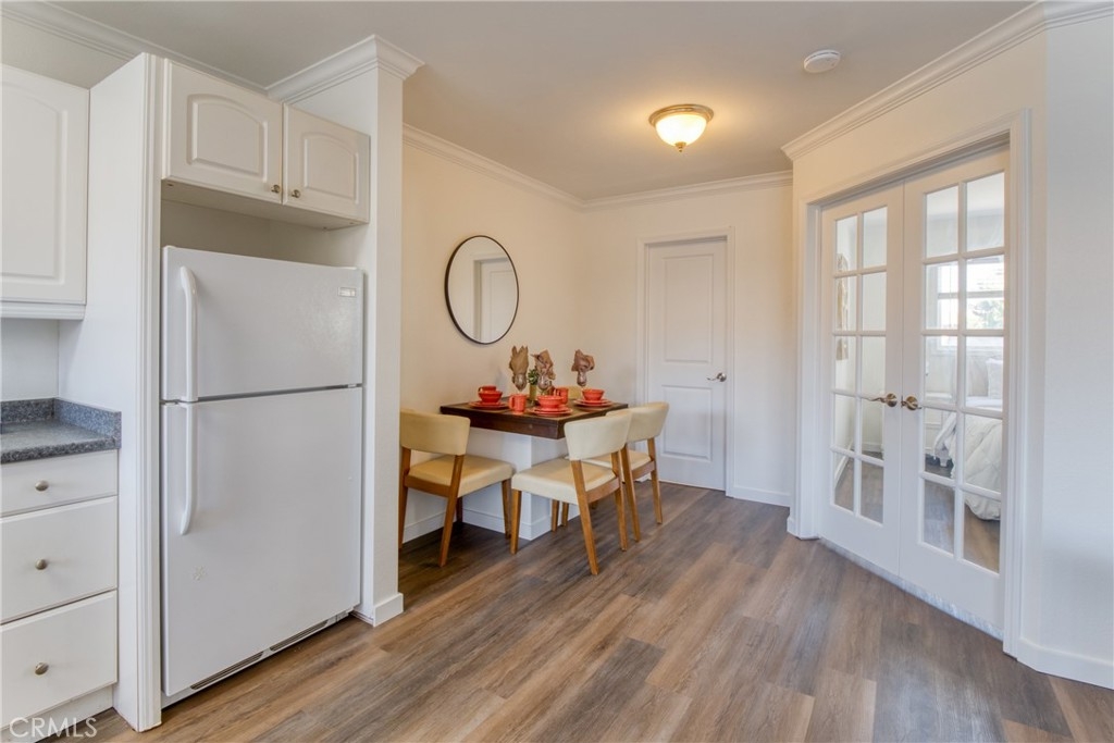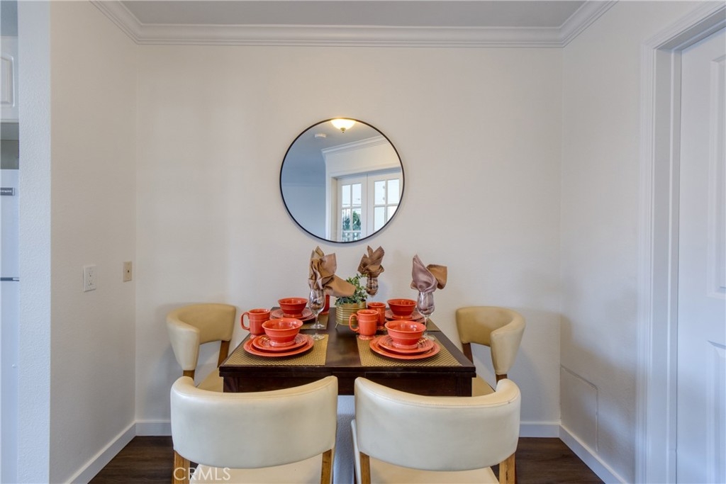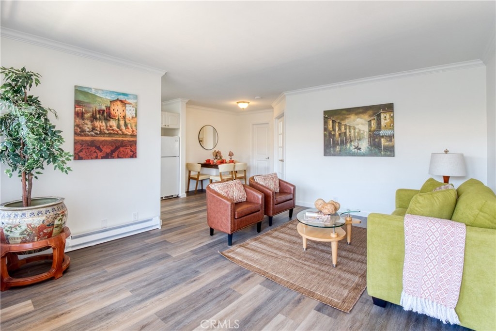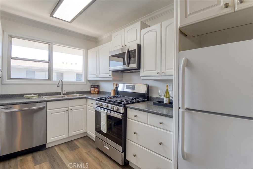 After 10 years as a rental unit the owners one and only tenant decide to head east. Any one who stays that long in one place must have liked the community and neighborhood...Right? This made me curious and as I spoke to some of the nurses and city officials who were also long term residents and property owners in the complex it reinforced my assumption of why the renters had enjoyed living there for so long. It needed some cosmetic TLC so we took the original bathroom down to the studs and rebuilt it all anew, from the spanish tile flooring to the modern blue vanity with two convenient sink basins and a sleek shower surround over a shiny new tub. All the flooring is quality 12mm vinyl plank, framed with new baseboards, crisp clean paint and crown moldings. The kitchen kept the cabinets and counters from the last remodel, but received stainless steel upgrades in the gas range, microwave and dishwasher departments. I challenge you to find a kitchen in a one bedroom condo with this much storage! The bedroom and bathroom have dual pain windows and the giant bedroom has about three times more storage than everything else you are looking at. Add a gargae big enough for my full sized SUV and onsite laundry and you have the complete package in a fun location for all the action on Pine Ave, The Pike and Shoreline Village. I can't imagine this one not attracting a lot of attention and offers, so please make your visit a priory and La Serena your Home Sweet Home. One small (15 pound) pet allowed. No short term rentals allowed.
