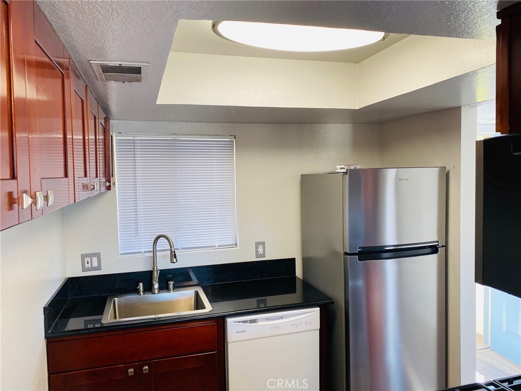 Turnkey 2 Bedroom 2 Bath condo-- with Two Ensuite Bedrooms! This is an End/Corner Unit with fabulous south, west, and city views and sunsets. And low HOA Fees (presently $245 per month). This unit comes with new stainless steel refrigerator and gas range, and has been completely remodeled with laminate flooring, and fresh paint throughout. Also included: Stacked washer and dryer; security-gated street level parking garage; Central AC; and so much more, ...and conveniently located to public transportation as we are just south of Pacific Coast Highway, just west of the 'traffic circle'.