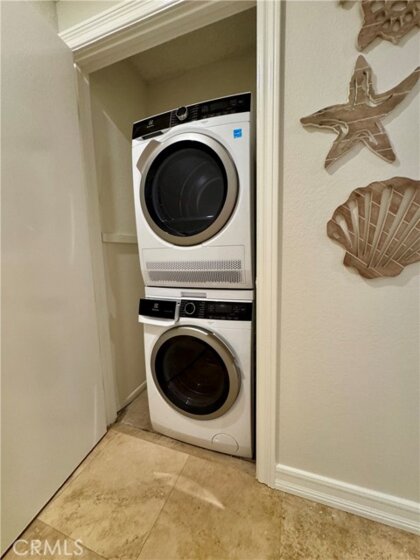 Laundry Dryer Included, Electric Dryer Hookup, In Closet, Inside, Stackable, Washer Hookup, Washer Included