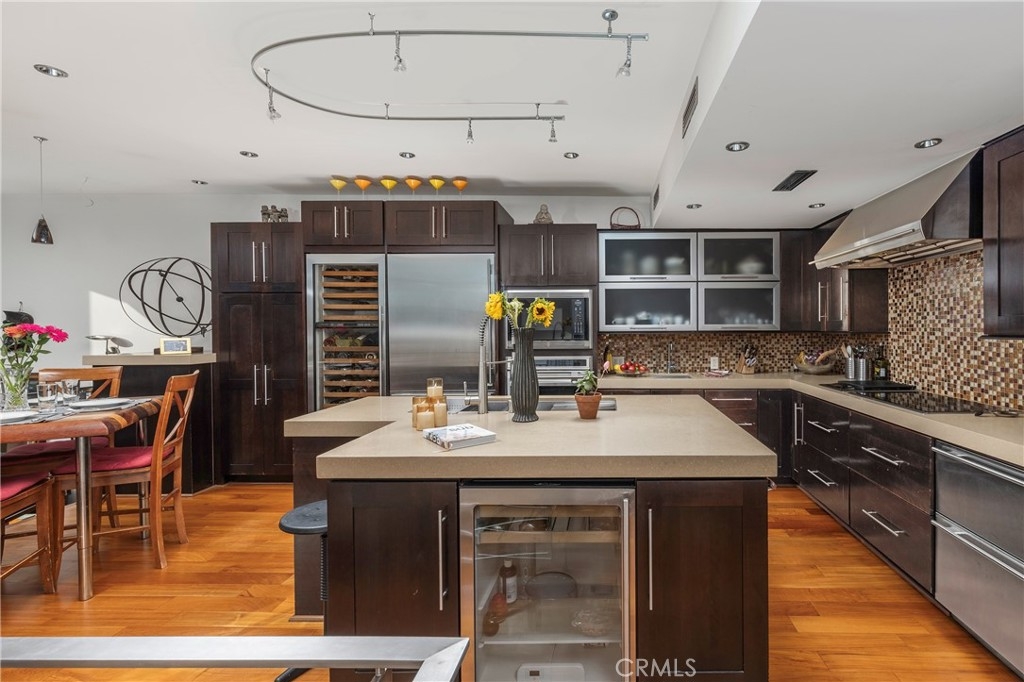 This one-of-a-kind, top-floor waterfront corner residence in Marina Pacifica is the ultimate in luxury coastal living. Originally selected and owned by the community’s architect, this premier unit offers unmatched privacy, panoramic harbor views, and exceptional design, making it the most desirable location in the entire 576-unit community. Extensively rebuilt from the studs up, the home has been remodeled to meet European 5-star standards with no expense spared. It features a spacious two-bedroom, two-bath layout with an additional den and loft. The expansive open-concept living area showcases floor-to-ceiling windows, a large private wrap-around balcony, and unobstructed sunset views with no sightlines to neighboring units. The chef’s kitchen is a true showpiece, equipped with Sub-Zero refrigeration systems, Wolf cooking appliances including an electric stove, indoor grill, food warmer, and commercial-grade ventilation hood, along with a Miele dishwasher, U-Line bar refrigerator, double stainless steel sinks, pot filler, water purification system, and custom Decora cabinetry. The designer bathrooms offer luxury spa-like features, including an oversized Toto whirlpool tub, a multi-jet rain shower, and custom stone walls. Additional upgrades include ultra-customized zone lighting throughout, stainless steel railings, five oversized garage storage cabinets, and two side-by-side assigned parking spaces. This home is being offered fully furnished and turnkey, ideal as a luxury executive residence, second home, or entertainer’s dream retreat. Boat slips are also available to rent within the community.