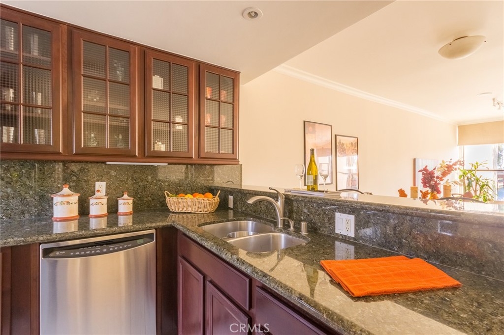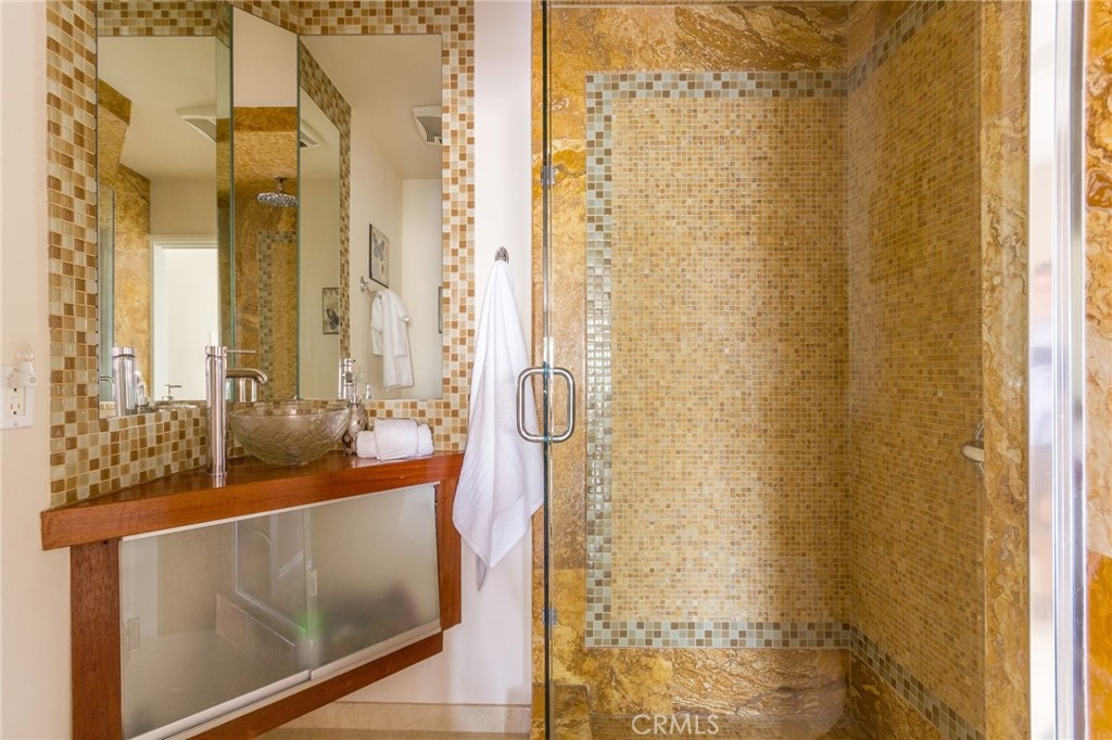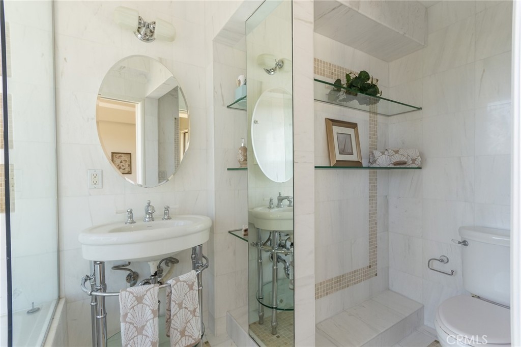 Price improvement! Key 19! Stunning designer waterfront residence featuring two bedrooms plus a loft and three bathrooms, showcasing spectacular water views from every room. Rebuilt from the ground up, this home includes an expanded primary suite with a luxurious marble bath and high-end finishes throughout. The interior features hand-selected French limestone flooring and a custom kitchen with rich wood and glass cabinetry complemented by Ubatuba granite counters. The downstairs three-quarter guest bath includes exotic marble, mosaic tile accents, and a reclaimed hardwood vanity with a glass bowl sink. Upstairs, the primary suite offers vaulted ceilings, elegant white marble with glass mosaic details, and a relaxing Jacuzzi tub. The second bedroom has been enlarged and includes a private ensuite bath and French balcony. The third-level loft captures sweeping water and mountain views and can serve as a guest retreat, home office, or creative studio. Monthly HOA dues of $794 include 24-hour guarded gate security, earthquake, flood, and fire insurance, gas, water, trash, and access to 18 acres of resort-style amenities. An additional $209.63 SCFC fee applies. Marina Pacifica is an exclusive gated waterfront community featuring six pools, spas, a clubhouse with a fitness center, and beautifully landscaped grounds. Enjoy a short walk to Naples, the Farmers Market, the Marina Pacifica Mall, and the new 2nd & PCH retail destination. The Passport bus stops just outside the community for easy access to Belmont Shore, downtown Long Beach, and the Metro to Los Angeles.