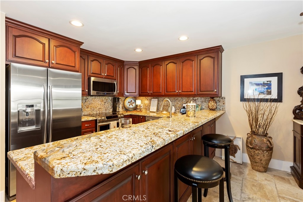 Enjoy cool ocean breezes from you private balcony overlooking beautiful Alamitos Bay, pool and spa. Amazing views from this second floor on the north side, looking at all the water activities and boats . Lovely remodeled condo with so many upgrades that include: custom glass around the dining area, custom glass on bath/shower, travertine flooring with Versailles pattern throughout, beautiful granite, custom cabinets in bath, kitchen and bar, soft close doors and farmhouse sink in the kitchen with tavertine. Attached footbridge connects us to shops, restaurants, AMC theater and Ralphs, enjoy 2nd & PCH shopping mall across street. Marina Pacifica is just a walk or a duffy ride away form nearby Seal Beach and Naples Island.