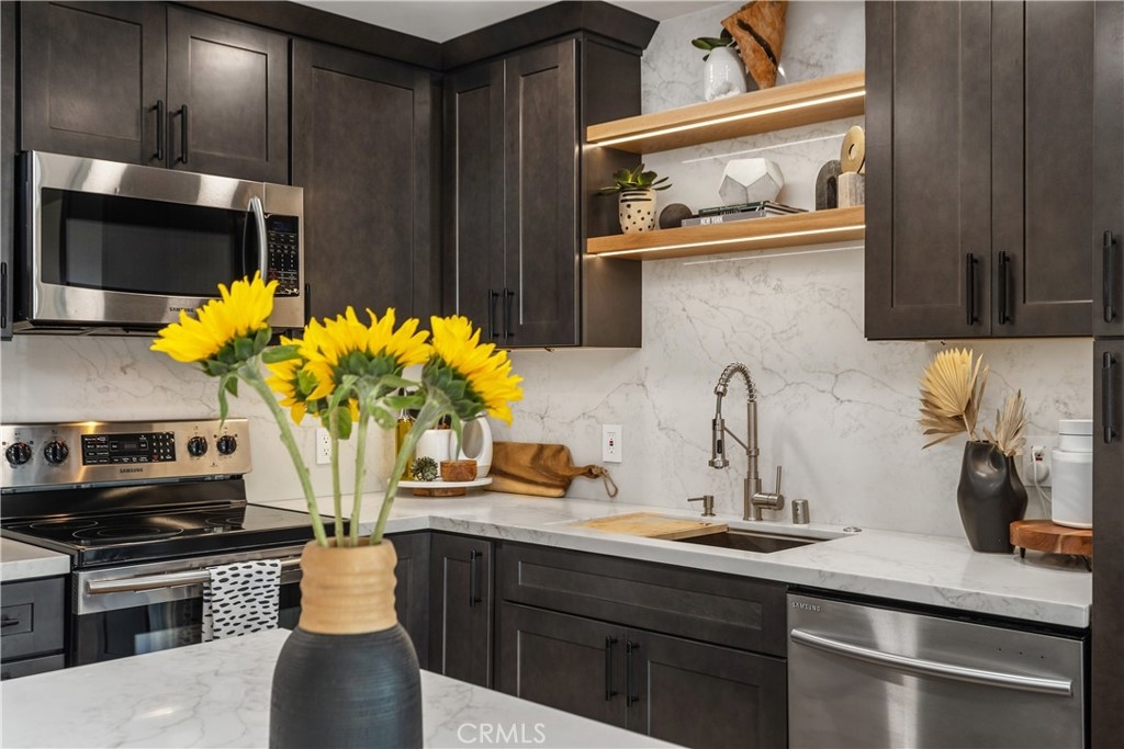 Experience the pinnacle of Marina Pacifica Coastal Living. This exceptional value offers a fully renovated 1-bed, 1 bath condo with an open-concept living space. Sunlight dances across inviting interiors, seamlessly connecting the stylish kitchen, dining area, and spacious living room with a custom built in bar and cozy fireplace. Every inch of this stunning residence has been thoughtfully updated, showcasing beautiful wood plank flooring, fresh paint, chic modern lighting, and sophisticated self-closing cabinetry with sleek countertops throughout. Additional upgrades include a Brand HAVAC unit, new water heater , garbage disposal, custom closets, and new ceiling fans. New automated custom shades open to a large private balcony with breathtaking views of the marina. This resort-style community includes six saltwater pools, 3 lagoons, koi pond, gym, clubhouse, and 24-hour guard with gated security. An exclusive pedestrian foot bridge provides Marina Pacifica residents access to movie theaters, restaurants, 2nd Street and PCH shopping, Gelsons, Wholefoods , and much more. Located in Key 11
