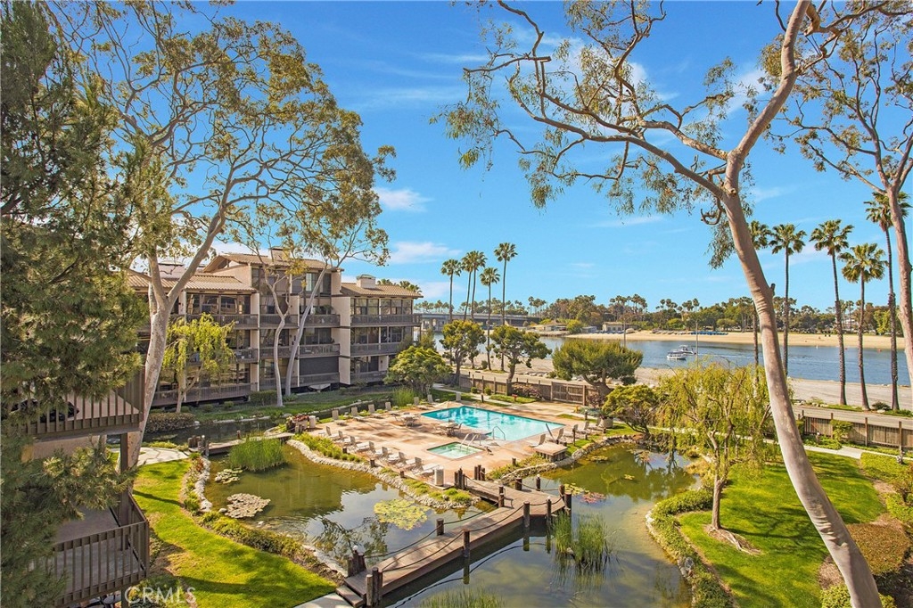 Wide open floor plan with vaulted ceilings offers a coastal contemporary vibe with fantastic water views! This is the quintessential "Turn-Key" condominium ready for move in. The remodeled kitchen with granite counters and white cabinetry is extended with ample counter space. The full bathroom was recently remodeled with custom tile surround plus spacious vanity. New carpet in living and bedroom along with beautiful porcelain "wood like" tile in entry, kitchen and dining room. The kitchen and dining overlook the sunken living room & the vaulted ceilings create the ultimate open concept feel. Access the large private balcony from the living room sliding door and soak in the pool, Marine Stadium, Mother's Beach, 2nd Street Bridge & of course the amazing sunsets! Full size washer & dryer in unit; central air + TWO assigned subterranean parking spaces with storage.