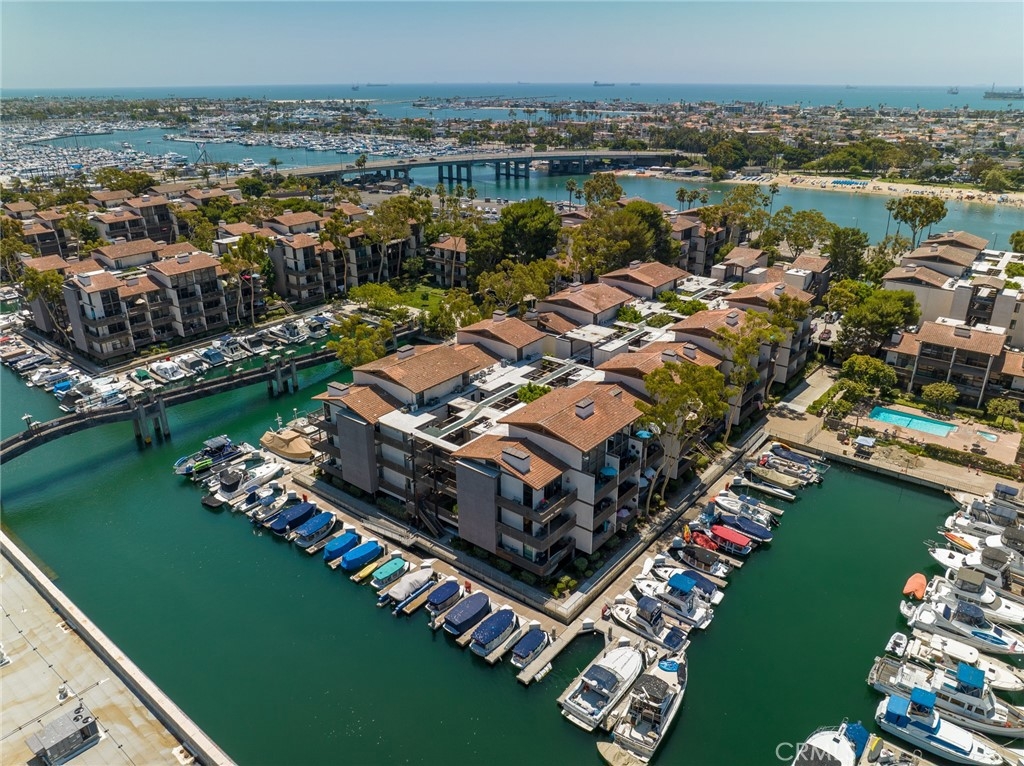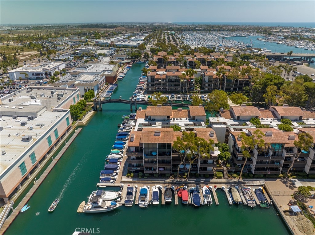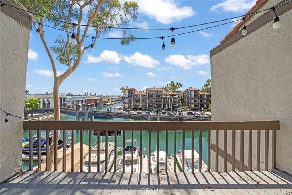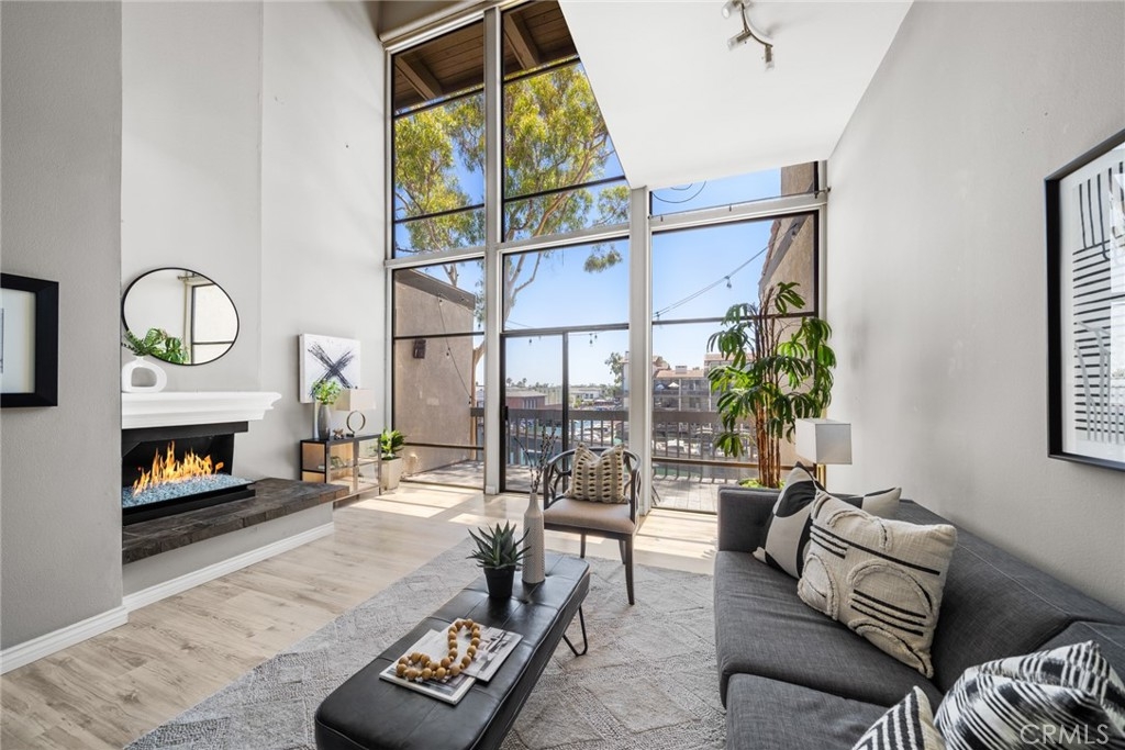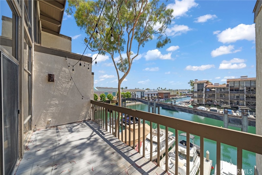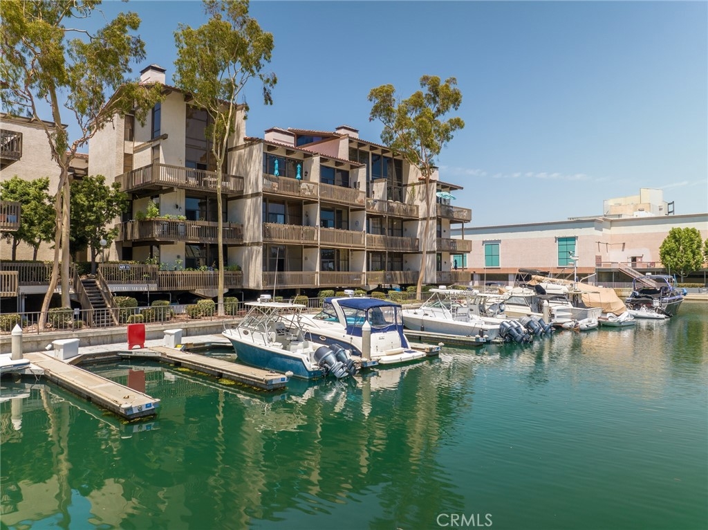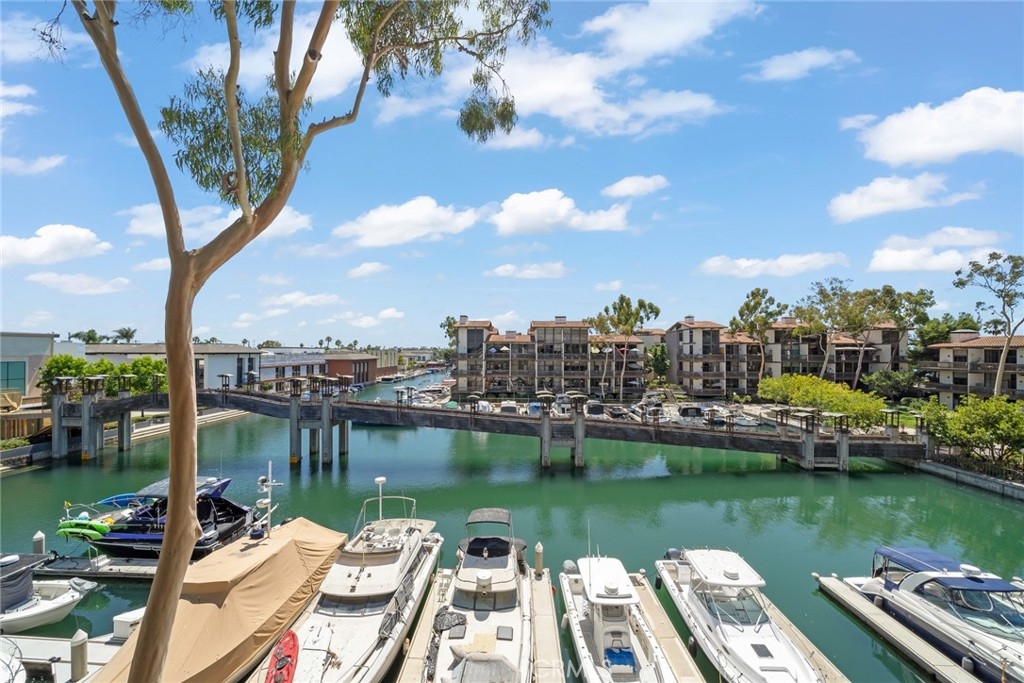 Welcome to this unique, top floor industrial modern loft in the desirable Key 11 of the Marina Pacifica Complex. Walk amongst the trees as you enter this 3rd floor unit just a short walk from the elevator. Enter the front door into a relaxing open floor plan. The newly remodeled kitchen stares out a floor to ceiling glass wall that frames the impressive view of the water way. The dining area is versatile and can accommodate bar stools and or a formal dining area. Step down into the living room and enjoy the fireplace and balcony. Upstairs in the loft space, the primary bedroom suite has its own bathroom with walk in shower, closet and tiny balcony. Large exposed beams cut through the cathedral ceiling space showing off its architectural design. This unit comes with 2 parking spaces and is conveniently located just a short distance to the pedestrian bridge that connects the complex to a wide array of shopping, restaurants & entertainment.