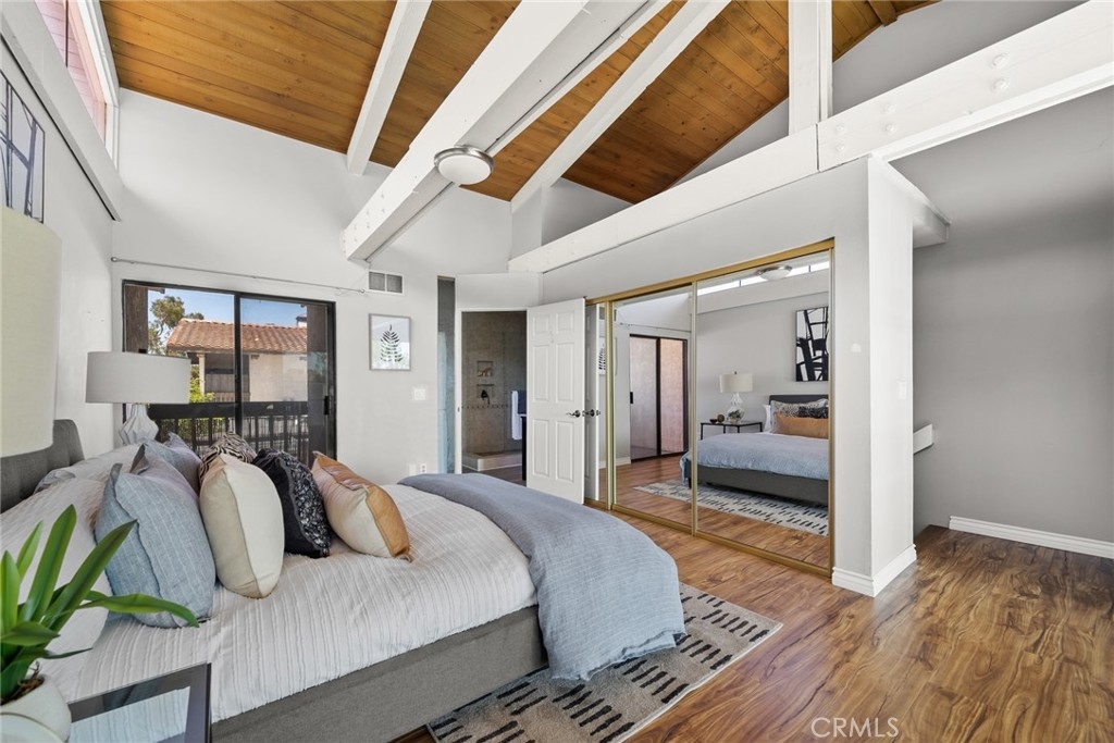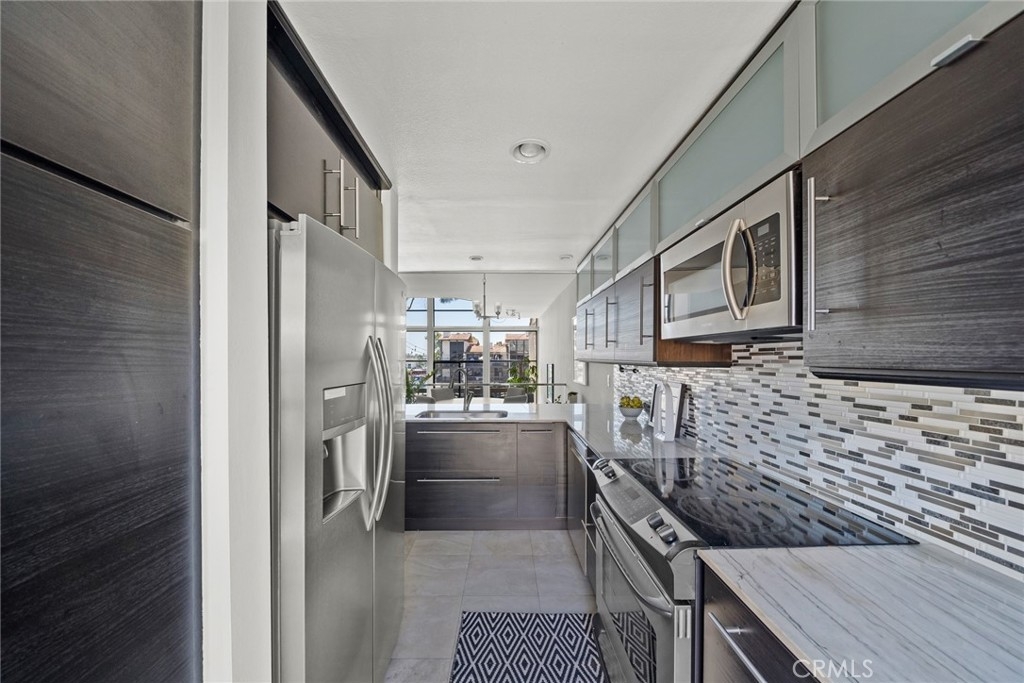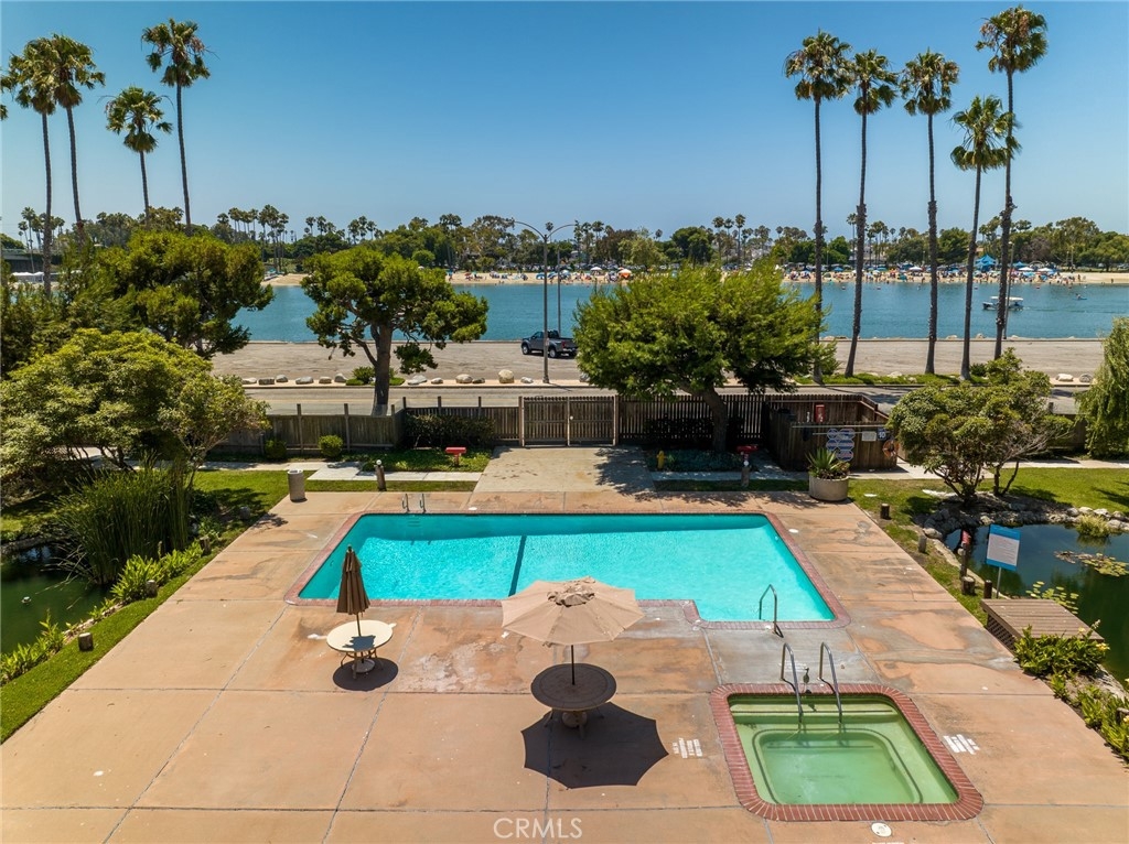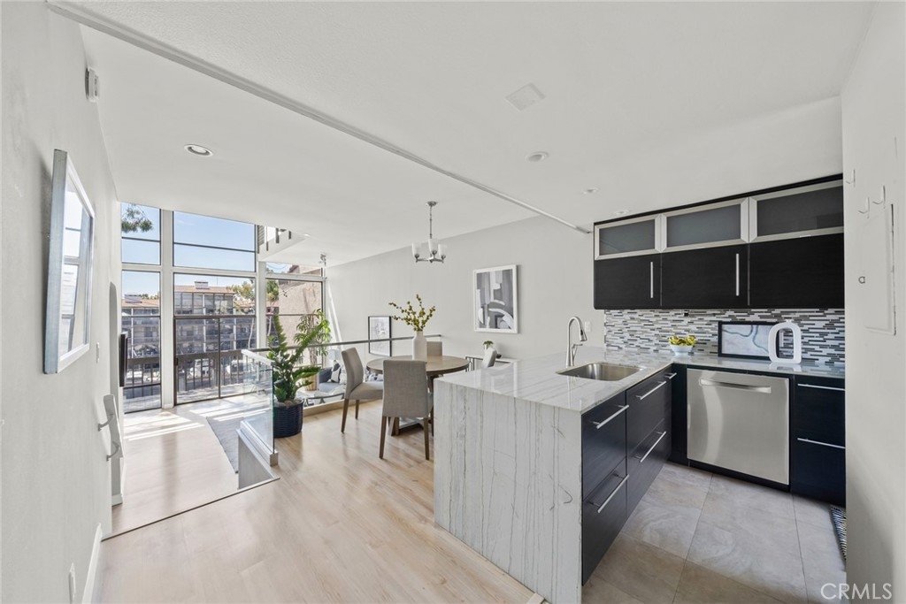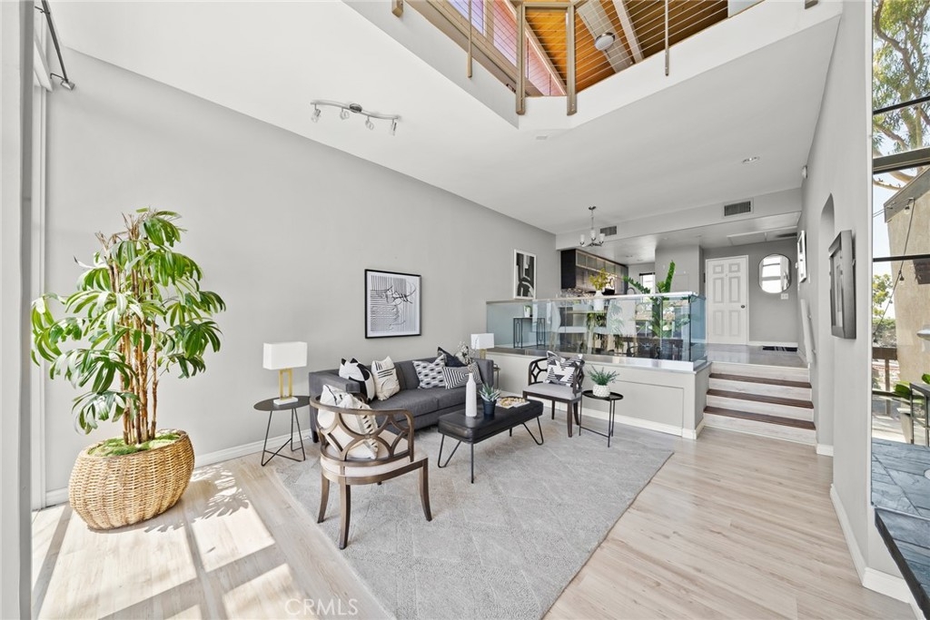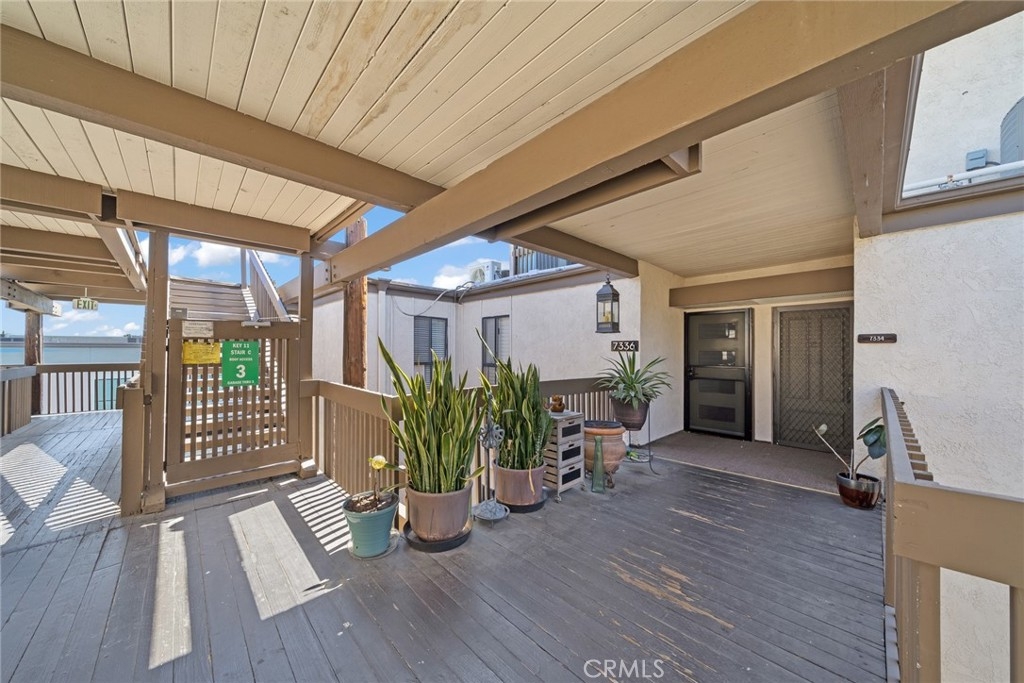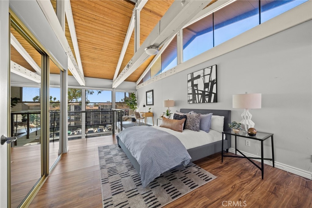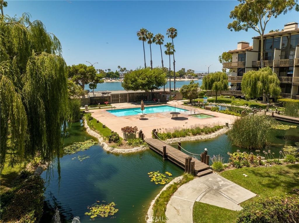 Welcome to this unique, top floor industrial modern loft in the desirable Key 11 of the Marina Pacifica Complex. Walk amongst the trees as you enter this 3rd floor unit just a short walk from the elevator. Enter the front door into a relaxing open floor plan. The newly remodeled kitchen stares out a floor to ceiling glass wall that frames the impressive view of the water way. The dining area is versatile and can accommodate bar stools and or a formal dining area. Step down into the living room and enjoy the fireplace and balcony. Upstairs in the loft space, the primary bedroom suite has its own bathroom with walk in shower, closet and tiny balcony. Large exposed beams cut through the cathedral ceiling space showing off its architectural design. This unit comes with 2 parking spaces and is conveniently located just a short distance to the pedestrian bridge that connects the complex to a wide array of shopping, restaurants & entertainment.