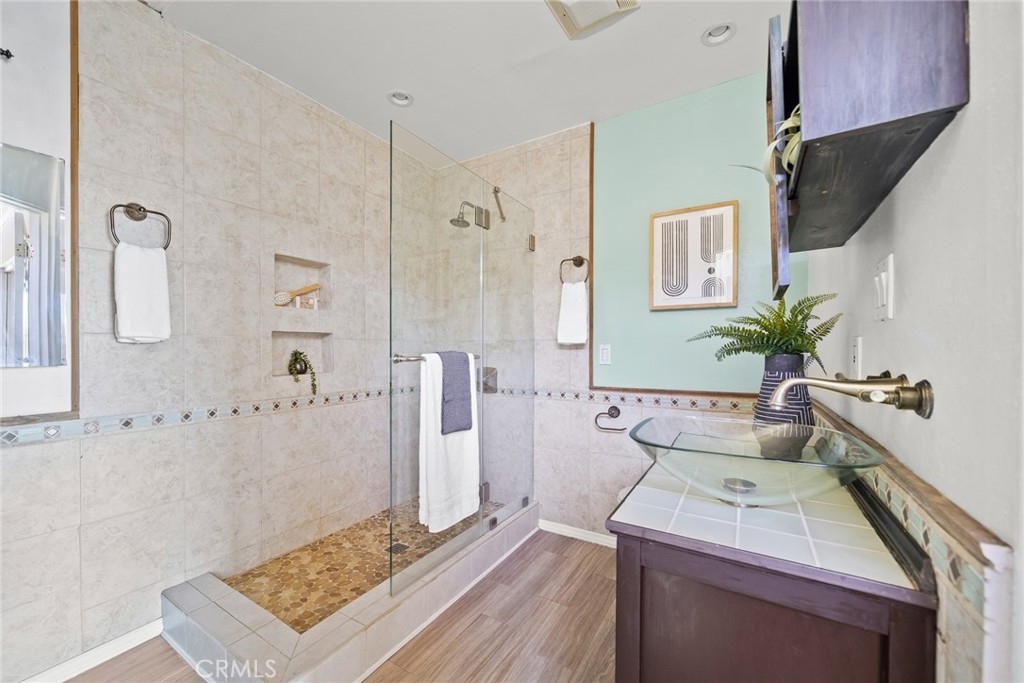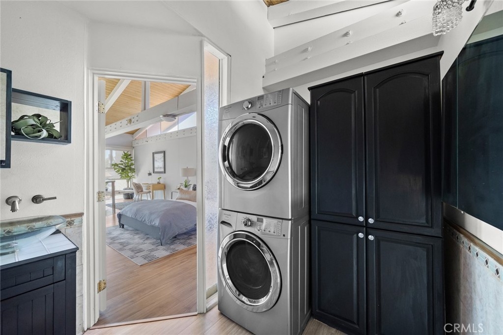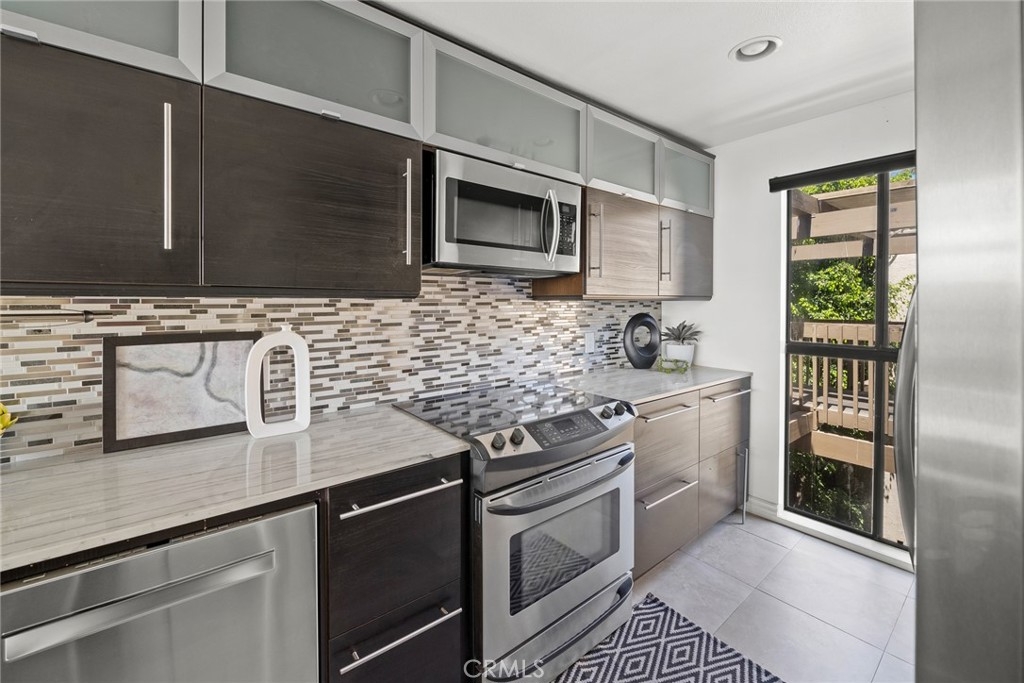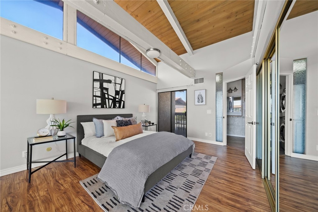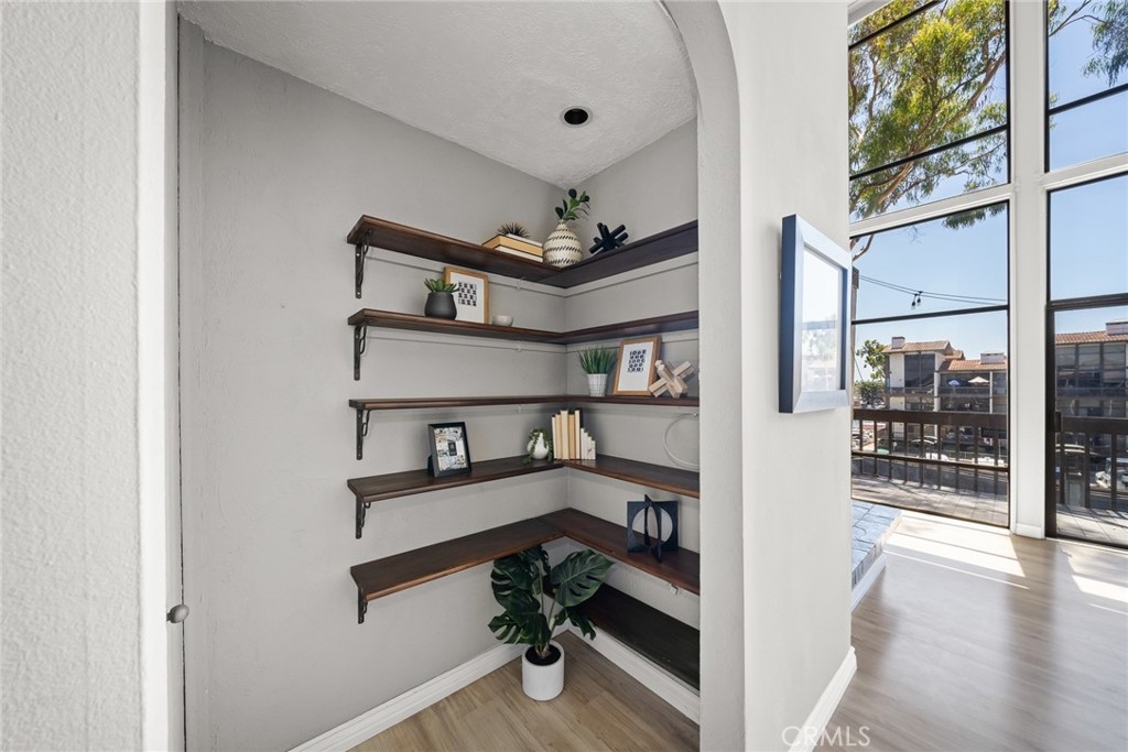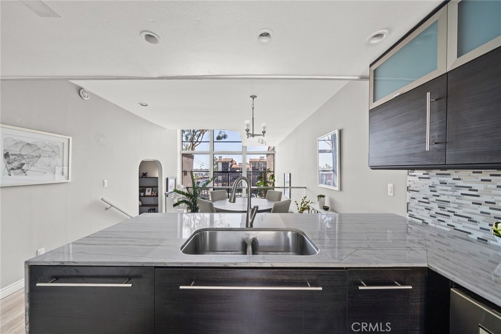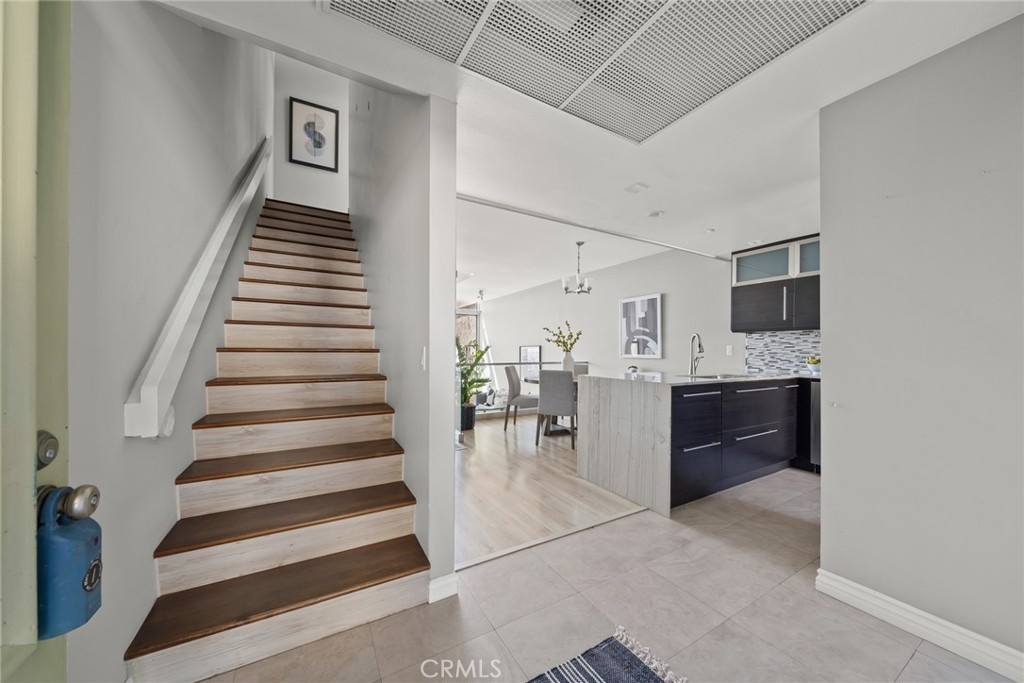 Welcome to this unique, top floor industrial modern loft in the desirable Key 11 of the Marina Pacifica Complex. Walk amongst the trees as you enter this 3rd floor unit just a short walk from the elevator. Enter the front door into a relaxing open floor plan. The newly remodeled kitchen stares out a floor to ceiling glass wall that frames the impressive view of the water way. The dining area is versatile and can accommodate bar stools and or a formal dining area. Step down into the living room and enjoy the fireplace and balcony. Upstairs in the loft space, the primary bedroom suite has its own bathroom with walk in shower, closet and tiny balcony. Large exposed beams cut through the cathedral ceiling space showing off its architectural design. This unit comes with 2 parking spaces and is conveniently located just a short distance to the pedestrian bridge that connects the complex to a wide array of shopping, restaurants & entertainment.