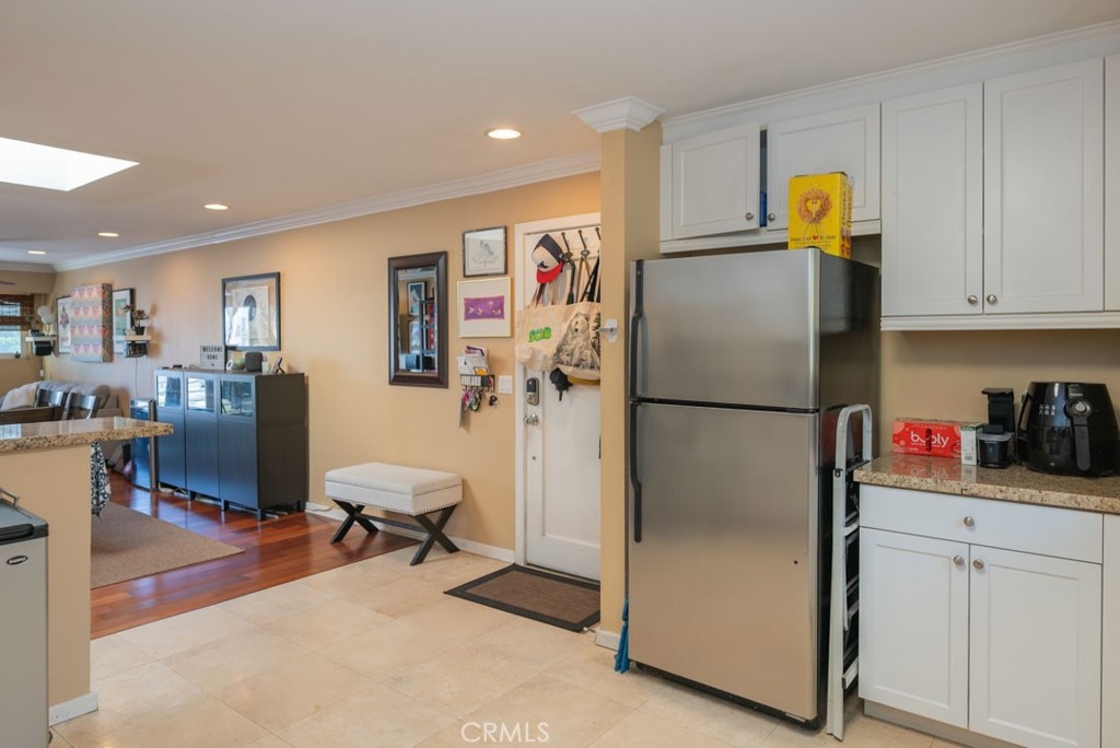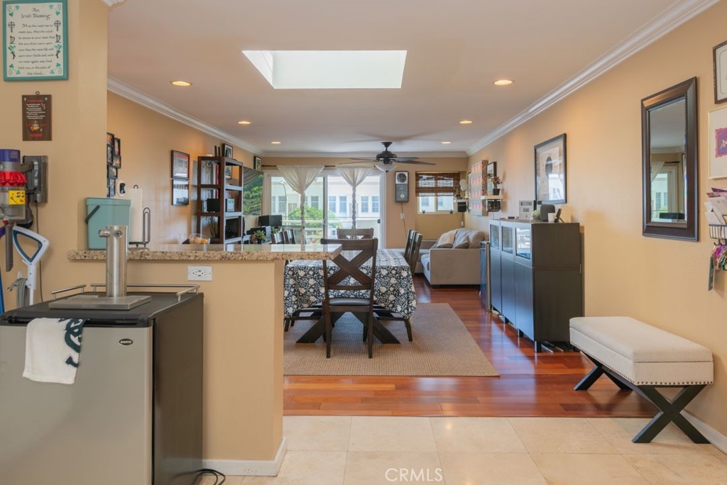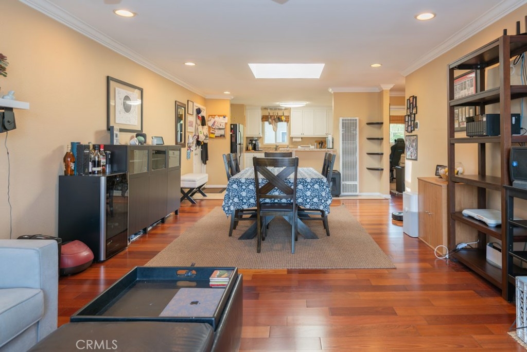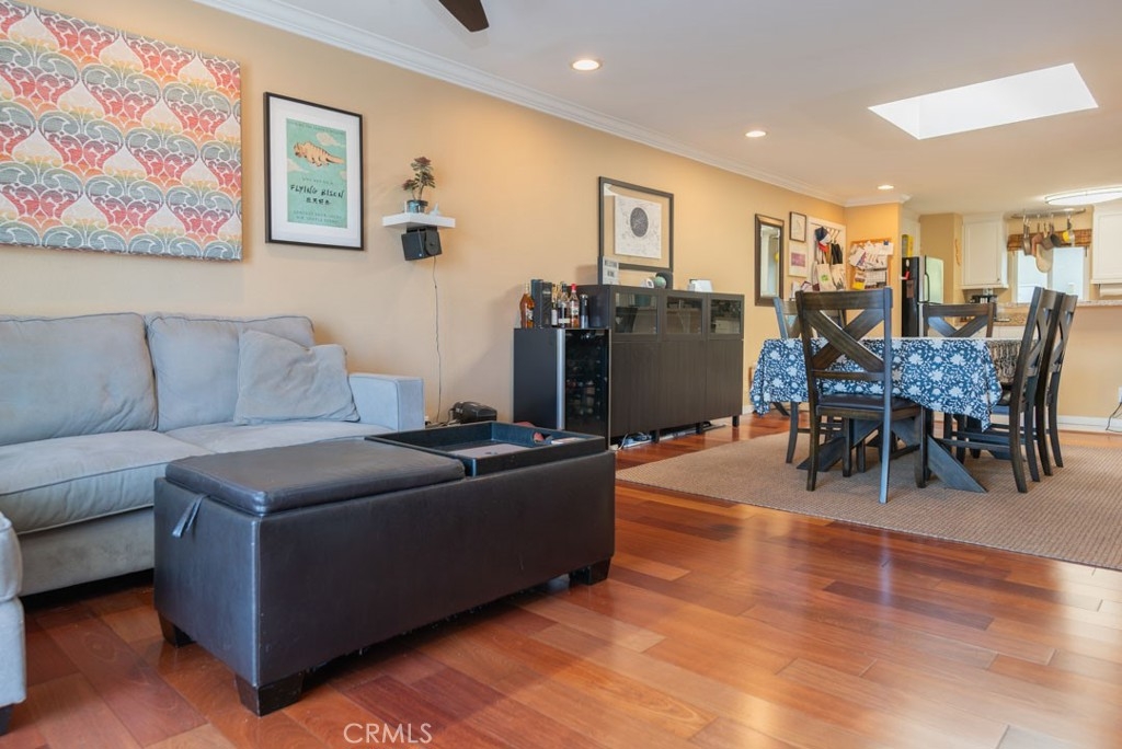 Feel right at home in this bright, spacious, and updated 2 bedroom, 1 bathroom condo in the heart of Long Beach. Situated on the top floor of a contemporary complex you have the highly desired bonus of no neighbors above you and stunning skylights which allow the light to pour in and warm up the open concept living space. Both the kitchen and bathroom are modern and are finished off with white cabinets and granite countertops. Additional notable features include in- unit laundry, designated covered parking, hardwood floors in the living room, dual-paned windows, crown molding and sliding glass doors that lead to your private balcony. Centrally located near shopping, dining, transportation, parks and schools, come make this your home!